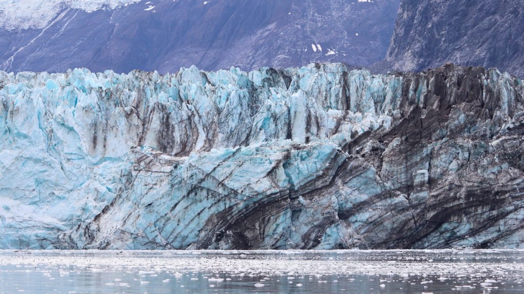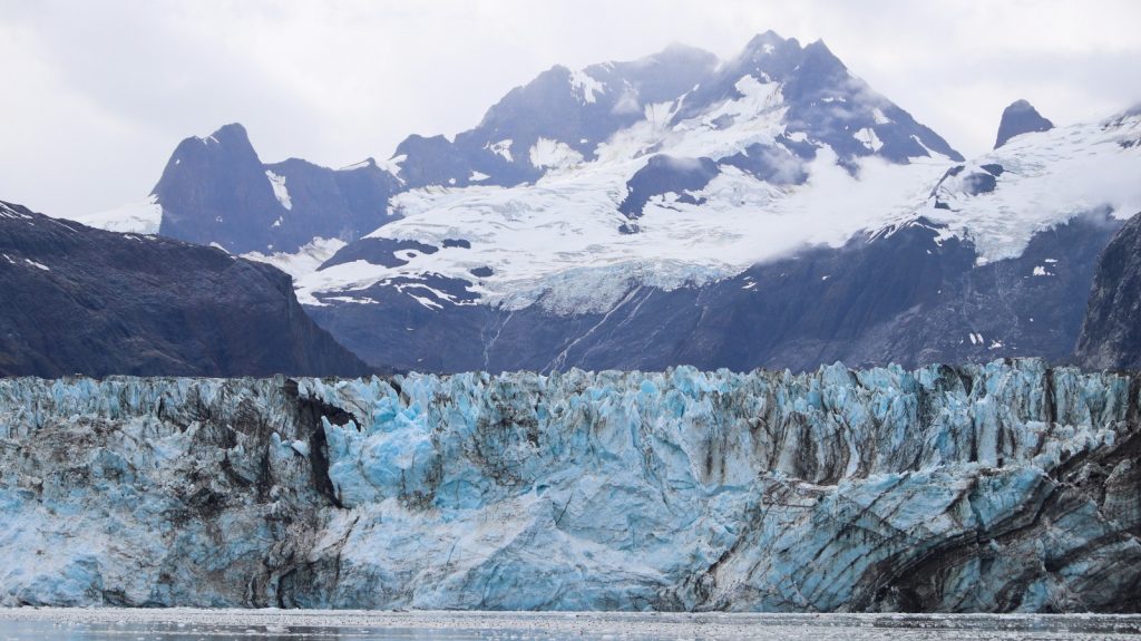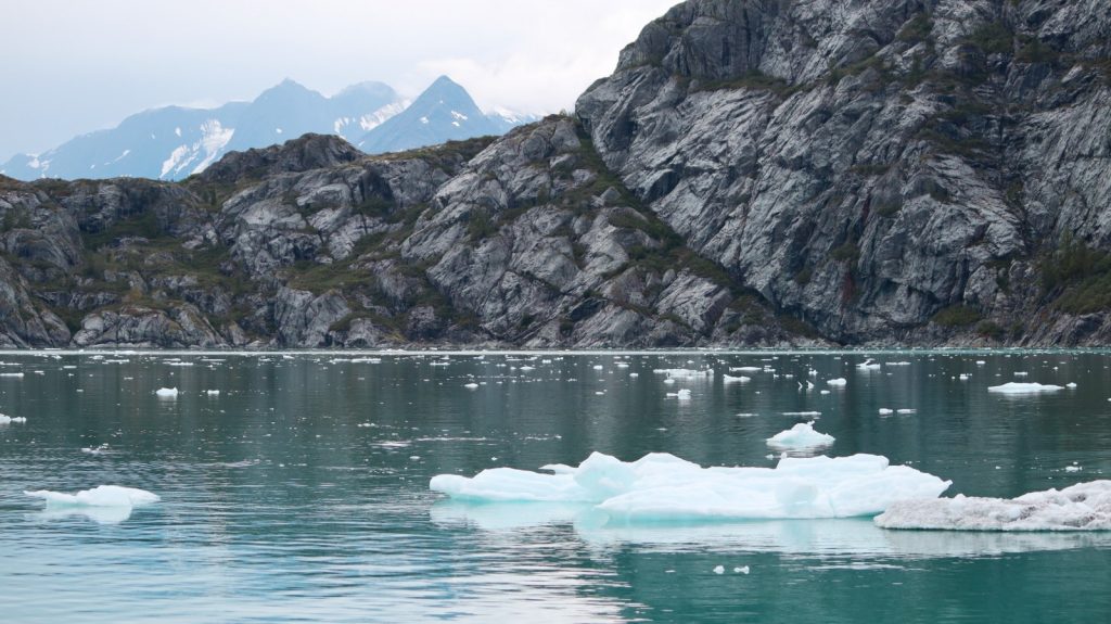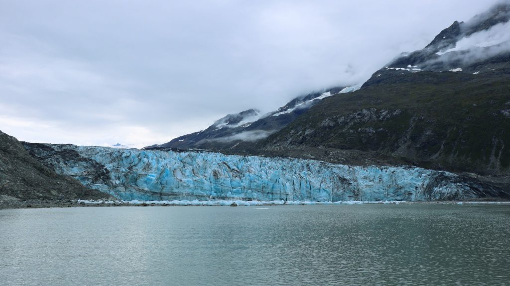 The third was the famous Johns Hopkins Glacier (1 mile wide, 250ft tall) which we showed itself – after turning a corner – 5 miles out. It was a serious “oh wow” moment seeing this huge river of blue ice flowing down from the mountains in the distance. A lot of smaller bergs were floating off this one, making for a slow approach the final two miles. Once about a half-mile away we sat there drifting and listening to the cracks and booms of the massive frozen river. It was moving alright, just at it’s own pace (about 8 feet per day, so they say).