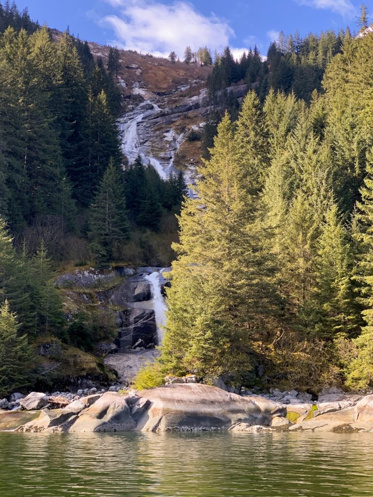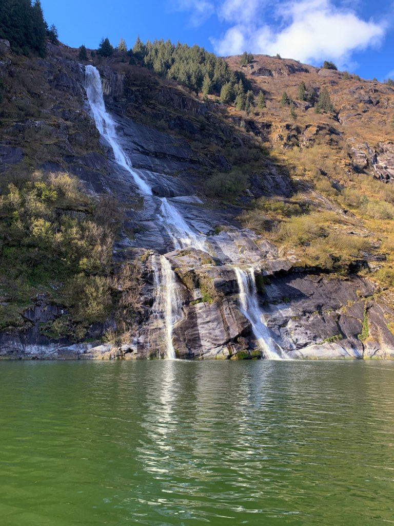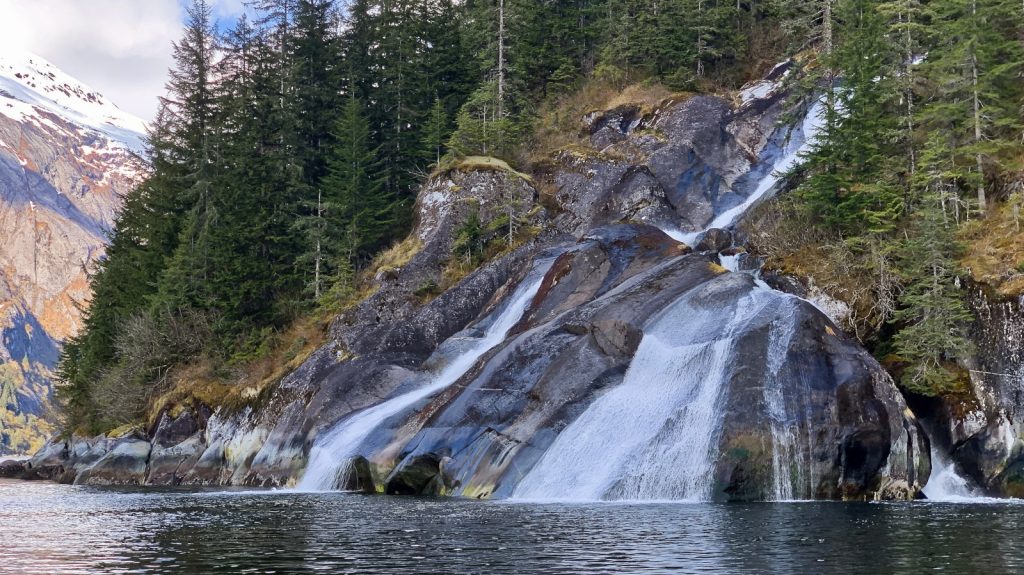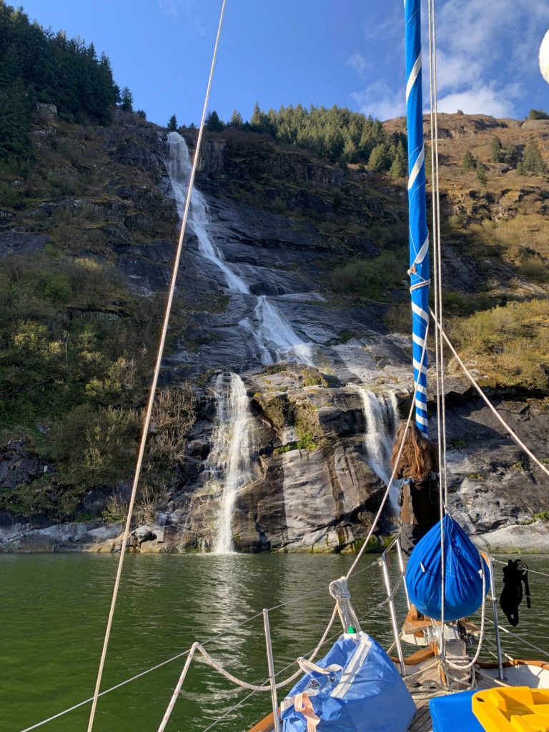 We would only traverse the first few miles of Tracy Arm, hopping from one waterfall to another as we progressed in. The late afternoon sun and the inability to anchor anywhere within Meriwether’s reach prevent us from navigating the arm’s entirety. At the end would be glacier. Glaciers actually; Sawyer and South Sawyer Glaciers were another full day’s travel down the fjord, but we simply did not have enough time.