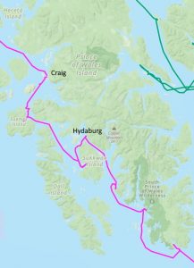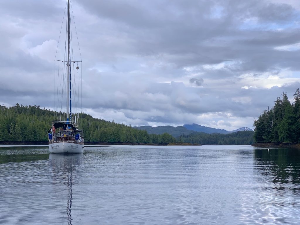 Another long day of motoring brought us to an anchorage we chose to ride out a wind event the following day before heading into Hydaburg – a small native village and our last opportunity for supplies in the USA. It is rare this year to sit still in a single anchorage for two days. Our hop-scotch style of sailing recently has resulted in movement nearly ever day we are not in an established marina doing bigger chores. In the past we got to an anchorage and sat still for a work week, but this year that limitation has eased. By this time, not 6 weeks into our sailing season, we have already traveled more miles than our sailing 2019 or 2020 seasons. It has been a bit exhausting, so a day stationary at anchor was a nice treat.