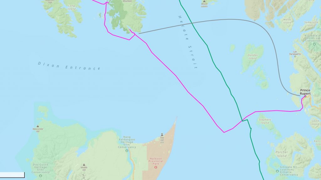 Two days of patience was finally going to pay off. The wait rewarded us with a damn near perfect wind forecast to sail across Dixon Entrance and Hecate Strait. This won’t be our first time, as we did it last year on the way up as part of a three-consecutive-day passage up the second half of the trip to Alaska. This latest passage would not be a multi-day event, but we did plan it to be an overnighter, just for kicks. Although we had two options to make it to Prince Rupert, I desperately wanted to sail across the open sea-like waters, not take the easy “inside” route that is more protected from the ocean swells.