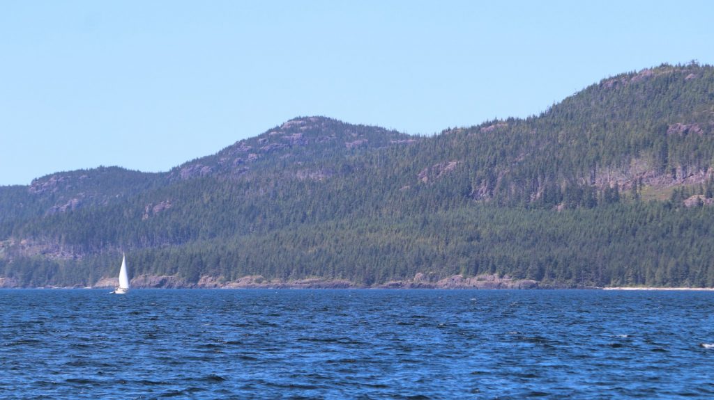 We returned back to Port McNeil to grab a package from the post office that took waaaaay longer then expected to arrive, and left as quickly as we could – the following morning. This would be the start of the long haul down Johnstone Strait; multiple long days of almost guaranteed motoring the entire way. So, after some early morning fog and four hours of motoring, the wind began to fill in from behind. In fact, soon we had our spinnaker up and we were sailing! Now sure, we only sailed for just over two hours but it seriously helped make the 7+ hour day much more enjoyable. Somehow we failed to get a photo to prove it either.