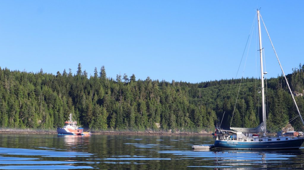 Crisis averted, we pulled into Port Harvey and laid our anchor down to spend the night in some quiet. Our neighbor-boat did offer some advice on our next day’s route, which after a light discussion we decided to take the longer, mor scenic route, because we had already traveled Johnstone Strait once before… why do it again? Now we would go up into the surrounding islands, through multiple rapids, and take the back way around Johnstone Strait all together. No sailing would be expected, but a new adventure it would be.