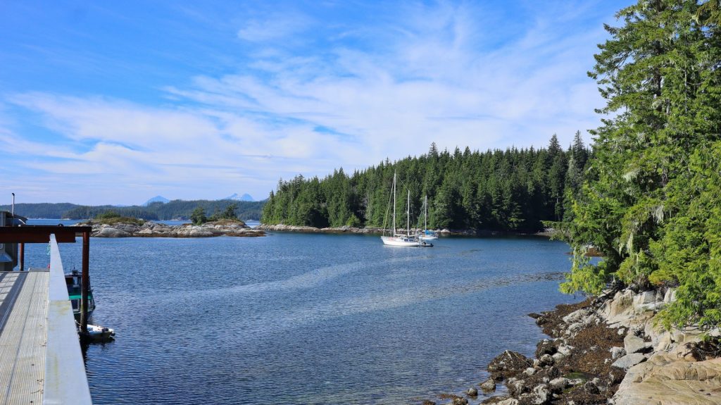 The Mamalilaculla Village was an adventure all in its own; with a fairly small anchorage off the island and one other boat making their way into the anchorage just before us, there wasn’t a lot of room for error. Luckily there was not a lot of wind predicted so we didn’t have to let out full scope. After climbing into the dinghy to go ashore we were met by the couple on the previous boat who informed us of all the no trespassing signs and the phone number to call to be granted permission to visit. Of course there is no cell signal out here, so a number isn’t all that helpful. We used our sat-phone and got no answer. Eventually we decided to go ashore ourselves, at which time we noticed the signage on the barge at the dock, but not the dock itself. In fact, there was signage regarding payment for visiting at the end of the dock. So we visited and both agreed that we would very much love to live in this very spot. I can only imagine the place full of life and children running around.