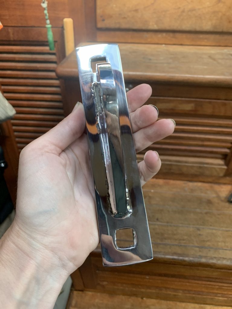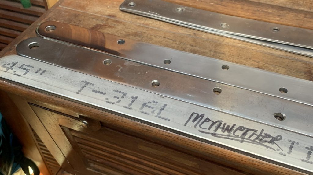 I got the bottom paint out of the way while the Shipyard fabricated our new part. Installing it was easy enough, but removing the old one was not so easy. Two days of hammering, grinding, and bitching is what it took. Once that was completed, I got to removing four more – of eight – chainplates, fabricating and polishing them myself (as the shipyard did not have the free man power to assist) before reinstalling them. While they were not cracked, we are just thinking ahead on replacing these critical parts before heading out into the greater Pacific Ocean. Keeping the old ones as spares is nice peace-of-mind as well.