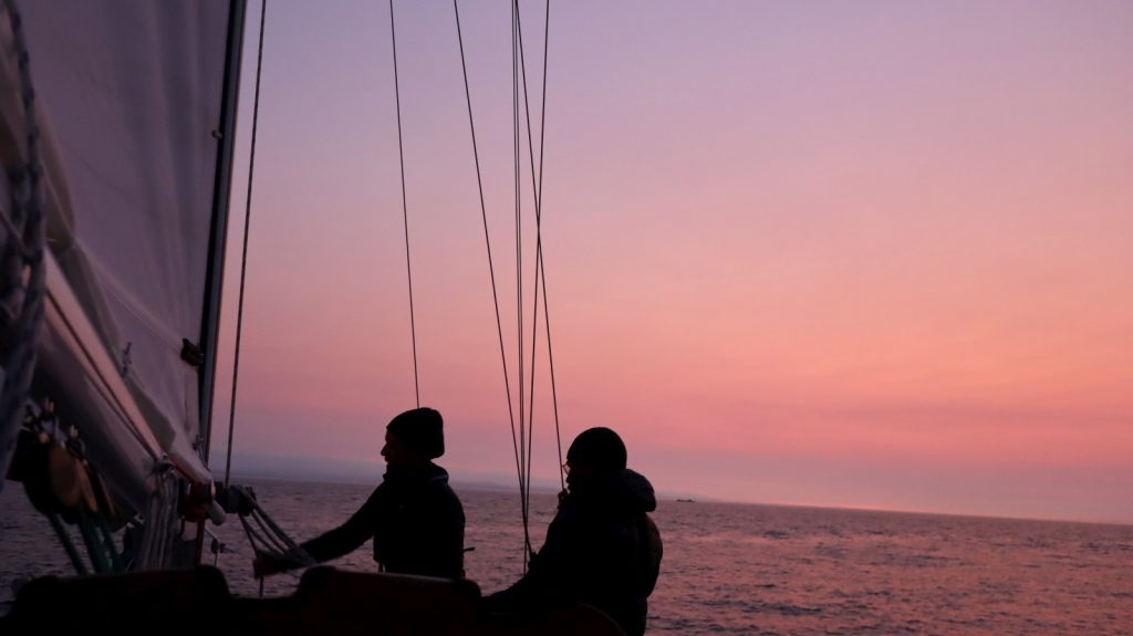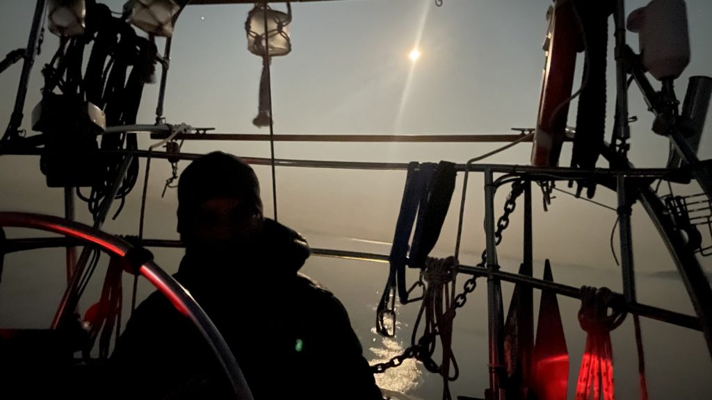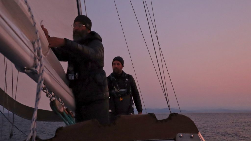 Within minutes of leaving the marina we had the sails up and headed towards the greater destination of “south”. We knew the wind would die off for overnight, but for the first few hours we got to sail, although not particularly headed in the right direction. We sailed for 30 miles, but as predicted the wind tapered off as we neared Dungeness Wildlife Refuge and the Perkins took over as the sun had just truly set. While the wind was forecast to be at our backs after the few hour lull, I did not believe it at the time. Only once it actually showed up, did I begin to have some hope. With Kerri off watch, Cameron and I got back to the sailing. That three hours would be the extent of the use of our old Perkins until we approached Neah Bay, after over 100 miles that overnight.