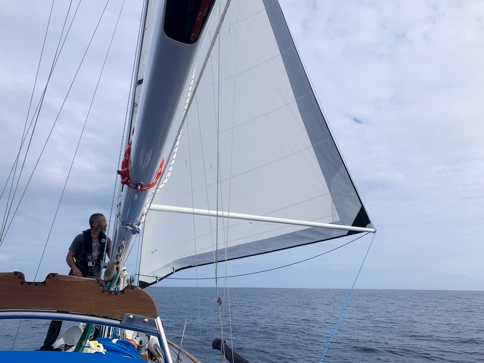 A few floorboards raise and it was confirmed, we were taking on water – 80 miles offshore. The pump quickly resolved the issue, but it triggered again not that much further along. We confirmed no hoses or tanks were leaking, leaving only the stuffing box (the hole that the prop shaft goes out of the boat) as the culprit. This too was confirmed as dripping way too quickly, eventually adding a few gallons of water to our bilge, activating the automatic pump. Not the greatest concern, and nothing to be done about it while at sea. We continued our sail with periodic bilge checks.