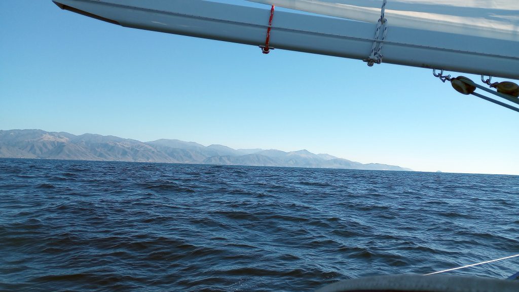 Leaving Monterey we had a big distance to sail – over 90 miles as the most efficient route plotted out, but would end up being just over 101 miles in total. Said distance was not navigable during the short daylight hours at this time of the year, so we had the choice of arriving to our next destination at night, or sail through the night and arrive in the morning. It is always preferred to arrive during daylight, so we opted to leave Monterey in the late morning, sail through the day and night, and arrive after sunrise – which we did exactly.
