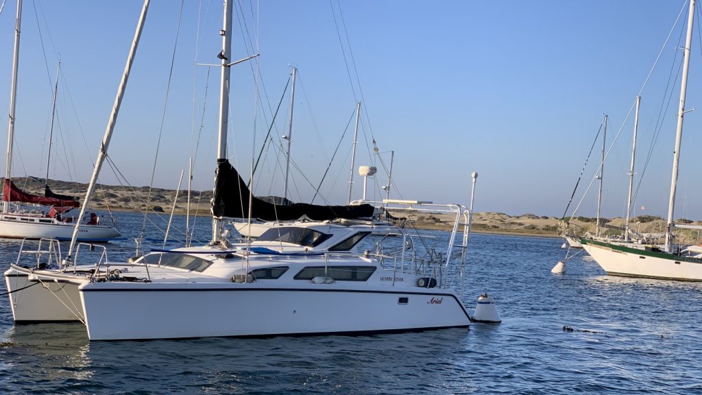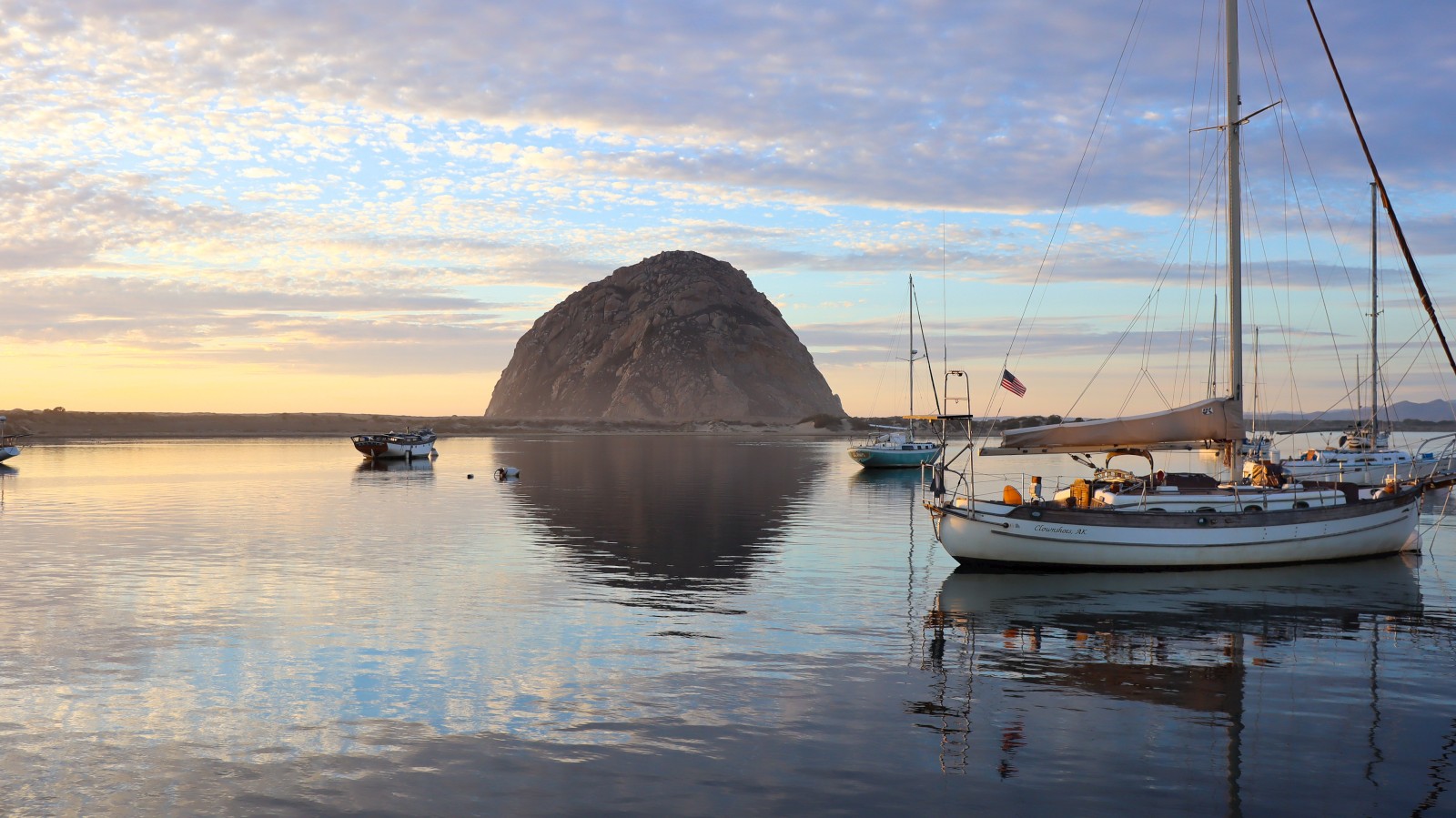The town and safe harbor of Morro Bay was just a short 27 nautical mile sail away. Sadly, we were only able to sail about 90 minutes of the six-plus hours travel time. We had little choice but to maintain speed as we desperately wanted to arrive at the entrance to Morro Bay at slack tide. The currents can run strong at the break wall, and if there is an opposing wind or sea, then the sea-state can be quite hostile. it all turned out to be moot, as our time of arrival was immaculate and we quietly motored right on in to a mooring ball.