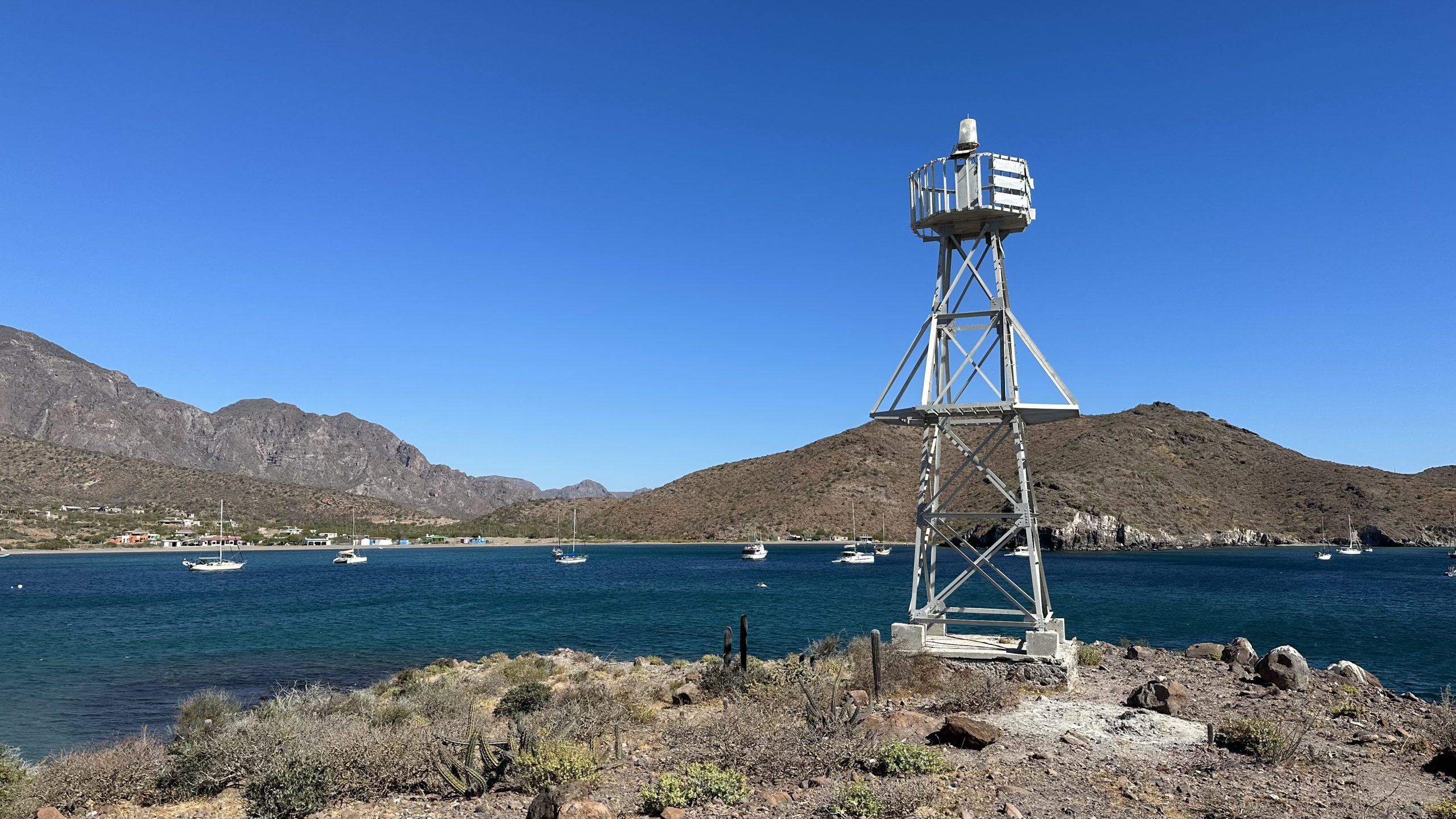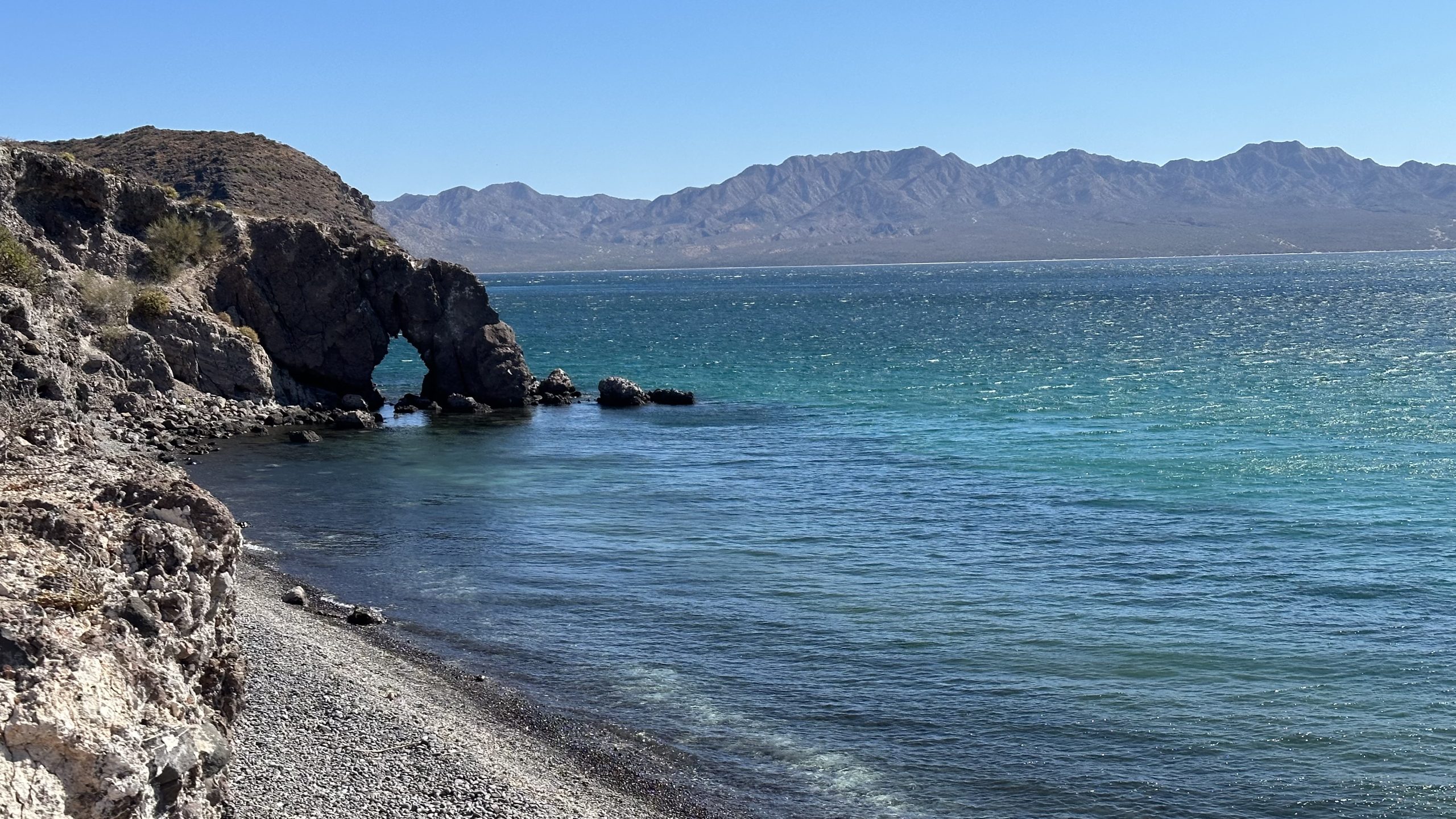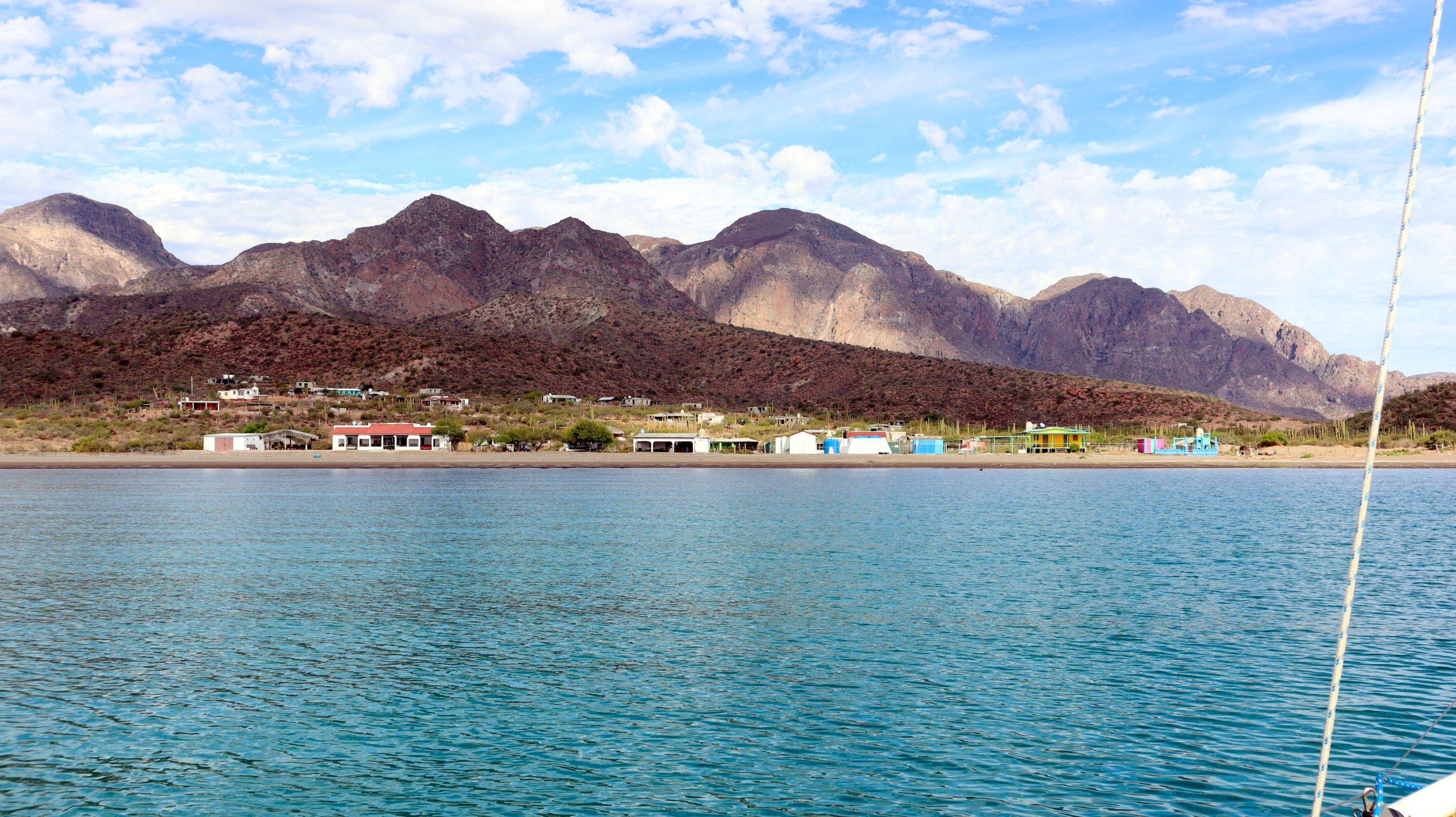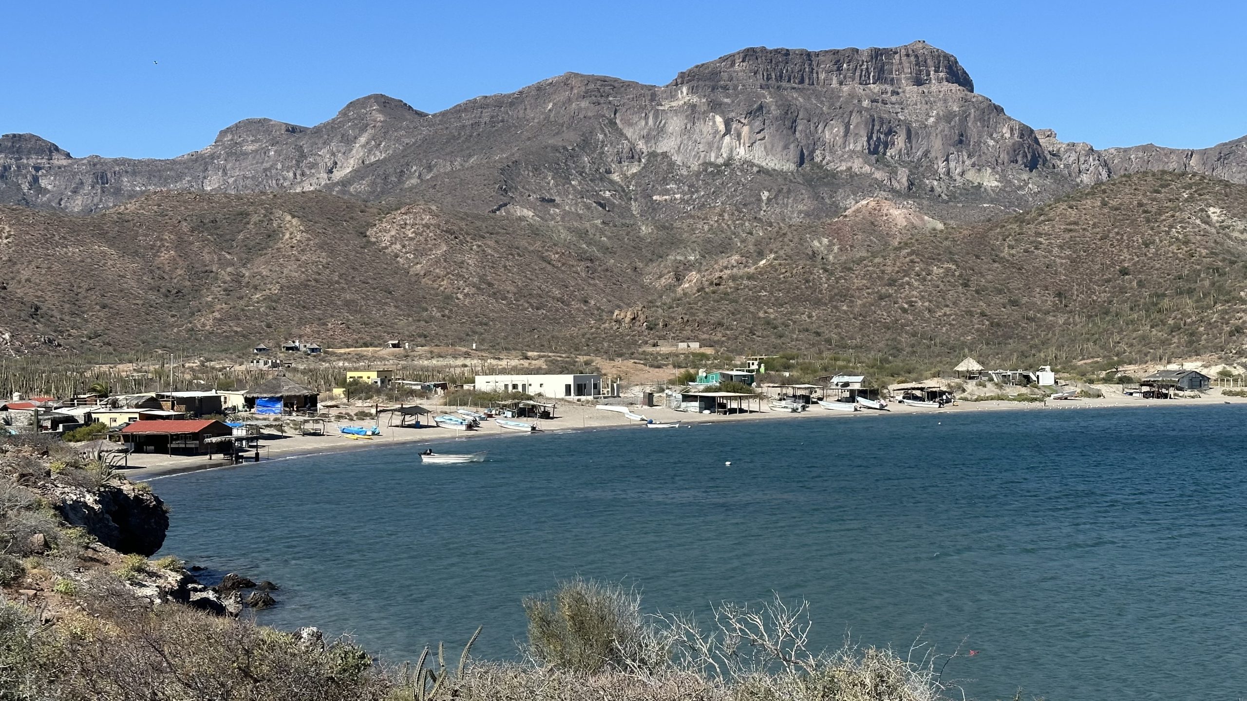 The village of San Evaristo, and its bay, was only 9 miles across the channel, back on the Baja mainland, and had great protection from this upcoming northerly. We arrived after our visit on Isla Coyote and a couple hours of motoring. Only a single other boat had dropped anchor in the bay, and we anchored a respectful distance ahead of them. We normally prefer to anchor ahead of others as we trust our anchor tackle, and can not trust other’s gear.
