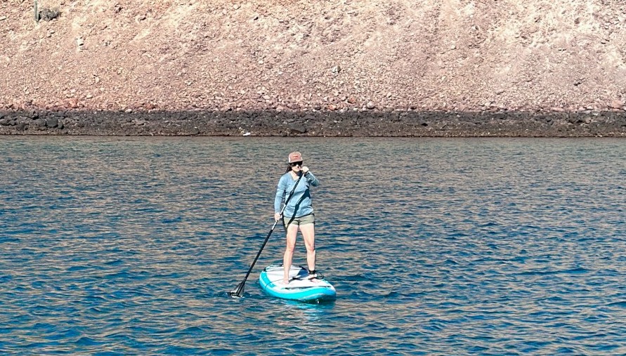 With the anchor dropped we set ourselves in for a multi day stay, some to avoid a moderate blow passing through in the next couple days, and some just to do nothing for a while. Our stay turned out to span 5 days. Kerri caught up on work while I punched out a few more minor fixes on the boat, including that stupid steering quadrant and fixing our Starlink dish. The only thing of note that we did during our stay was to dig up the two new stand up boards from the quarter birth, get them inflated, and go out for our maiden paddle on them in the super calm waters of the Estanky anchorage.