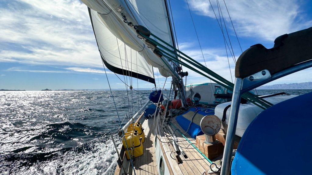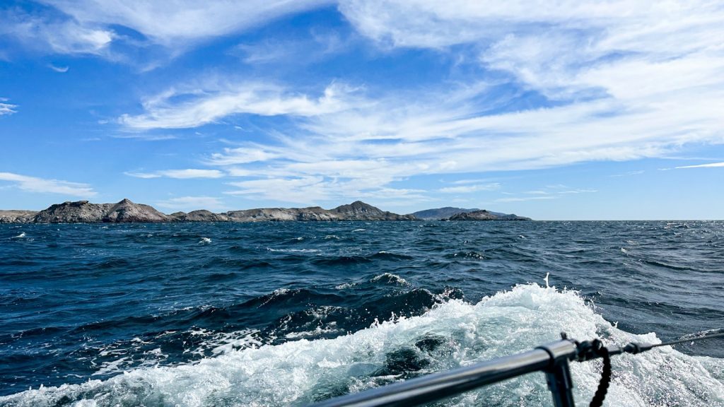 We could have stayed longer, but with the wind blowing perfectly to go where we wanted to go, and that place being a new-to-us location, we picked up anchor and set out with the tide. All in all it was only a 25 mile jump, easily accomplished during daylight hours. We would sail past one of our favorite islands of our run up the Sea; Isla Partida. Although parts of us wanted to stop there again, a new adventure awaited on the next island to the south. The wind did pick up lightly as we progressed through our day, culminating in 20+ knots on our quarter as we were approaching our destination. This is all fine and dandy in my eyes, especially for down wind sailing. We pulled off some text book maneuvers to douse both the head and main sails, and motored the last half mile to our new island.