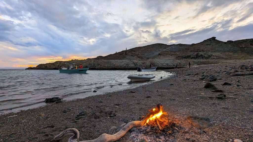 Another day we dropped the dinghy in the water to carry a load of chairs, drinks, and trash to shore. There we hung out with a small bon-fire while the sun set. It was a purely-practical fire really, just to burn much of the paper trash that would otherwise prematurely fill our trash locker. This noted our first time on solid ground in nine days. Yep, we were quite happy to just stay on the boat after 6 months of the land-life.