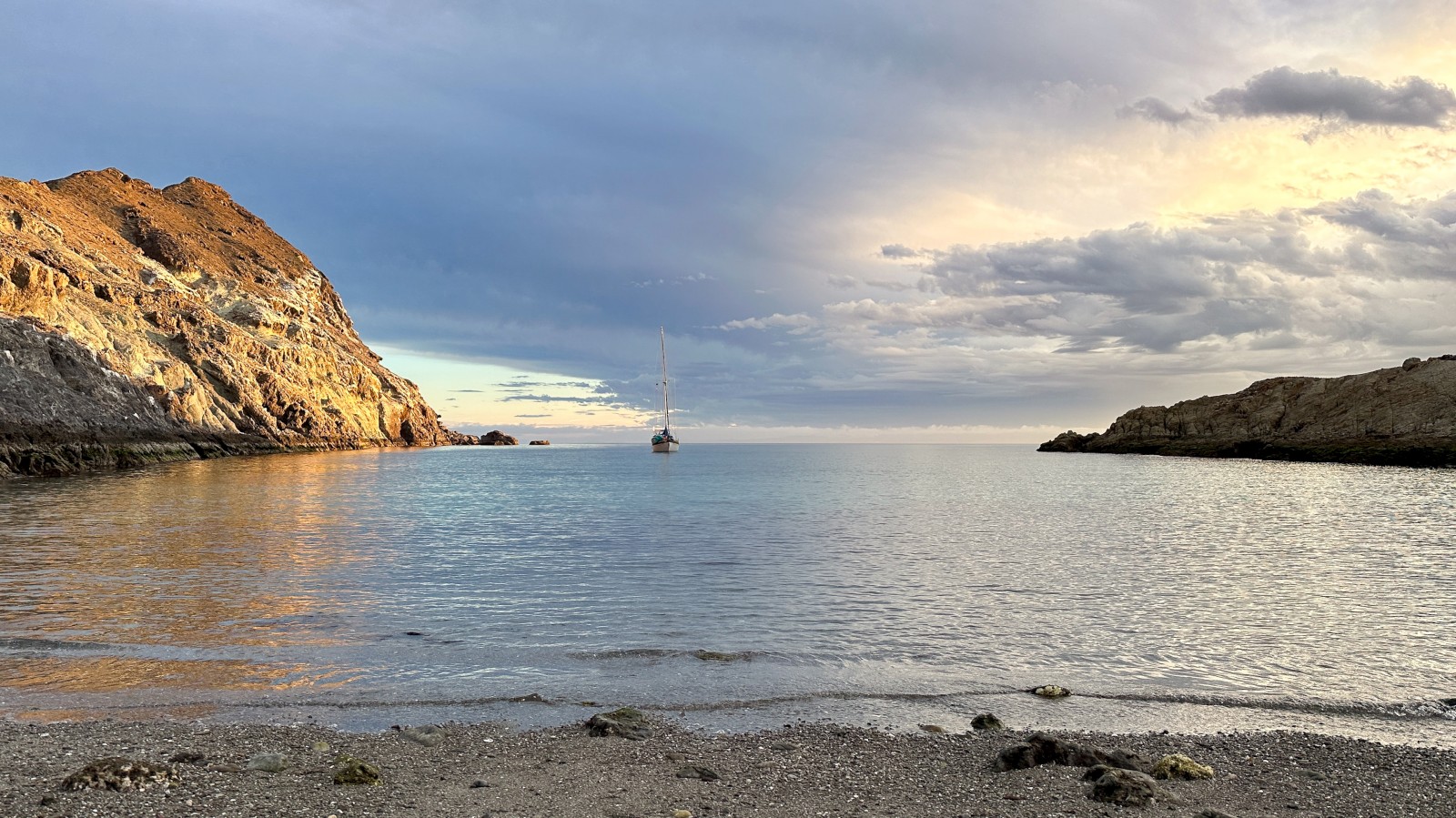 Isla Salsipuedes is but a sliver of an island but comes with three good anchorages. One on the north-east side, exposed to the northerly winds that blow this time of year, and two on the south-west. The anchorage we wanted was a small nook, just enough space for a single boat as long as that boat stern anchors to prevent swinging into the rocks on either side. And that is just what we did, using all our Pacific North West experience of stern anchoring to position Meriwether in the perfect spot to be both protected and scenic.