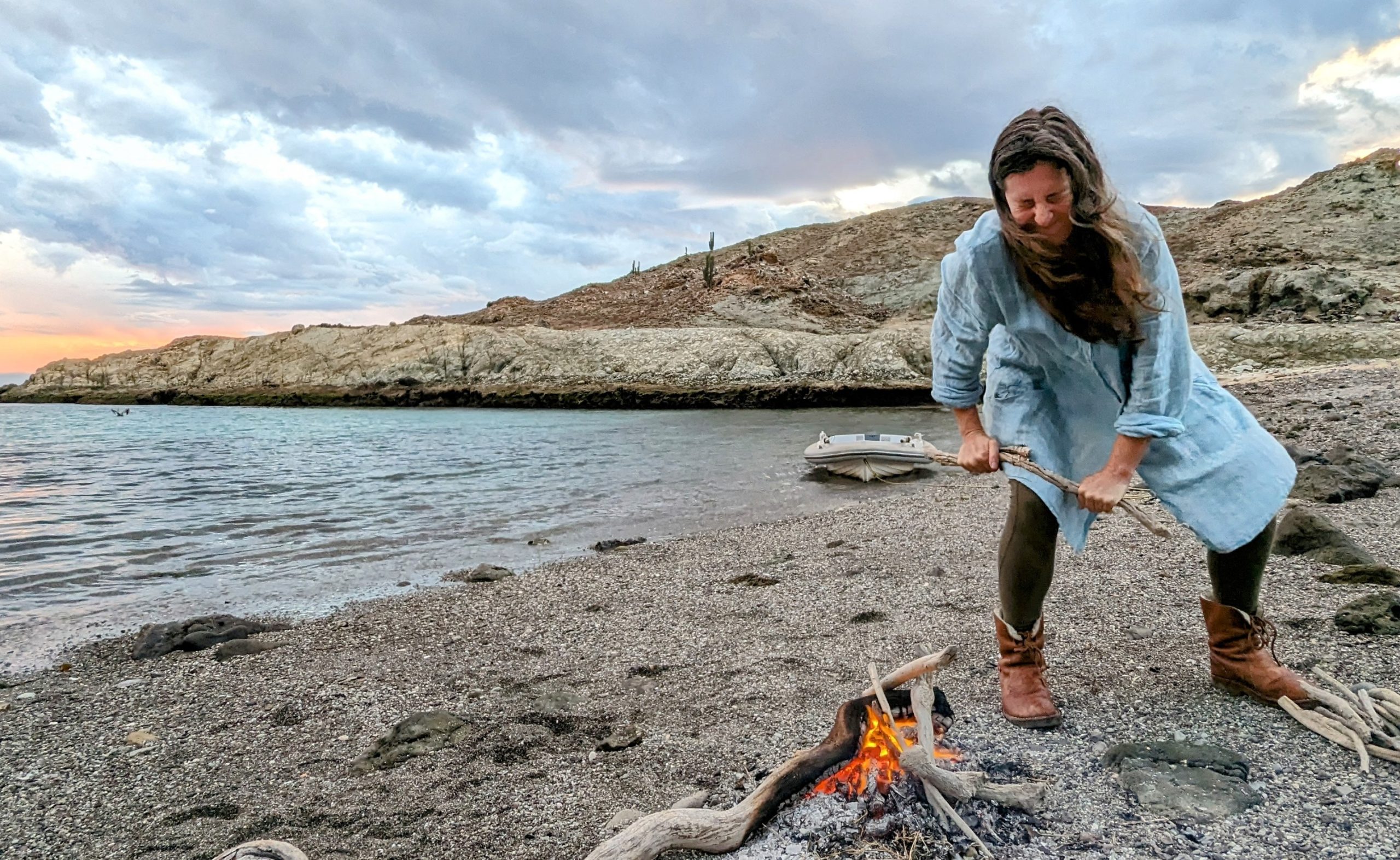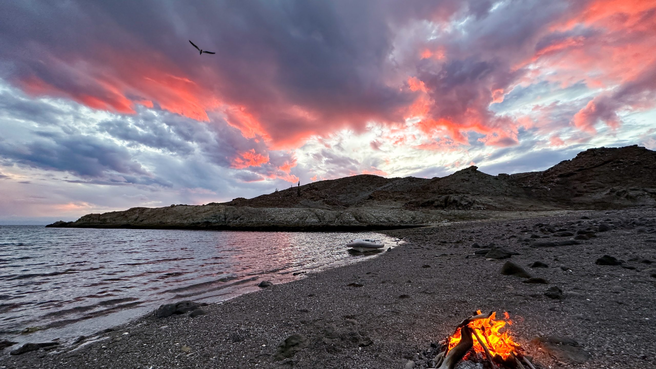 Another day we dropped the dinghy in the water to carry a load of chairs, drinks, and trash to shore. There we hung out with a small bon-fire while the sun set. It was a purely-practical fire really, just to burn much of the paper trash that would otherwise prematurely fill our trash locker. This noted our first time on solid ground in nine days. Yep, we were quite happy to just stay on the boat after 6 months of the land-life.