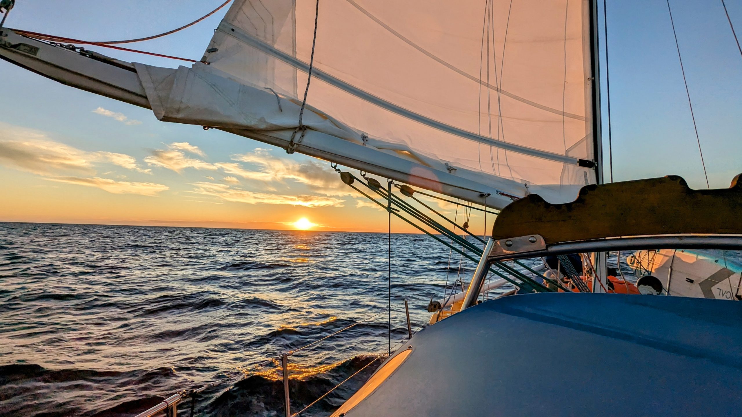 It wasn’t until the final hour or so that the wind had picked up to nearly 30 knots of true wind. We were surfing down 8 foot seas at 8 knots so rolled in the head sail to reduce power. It didn’t matter, even with just a reefed headsail we were still trucking along at a rapid pace. This concerned Kerri (who already wasn’t feeling at her best from the start of the day) who wanted to douse the sail early to avoid potential issues closer to land. The attempt to drop the mainsail while still sailing down wind went “unsmooth” to say the least, and we eventually had to turn into the wind to drop the main properly. Then, only five minutes later, as we approached the entrance to the harbor, the wind died off completely.