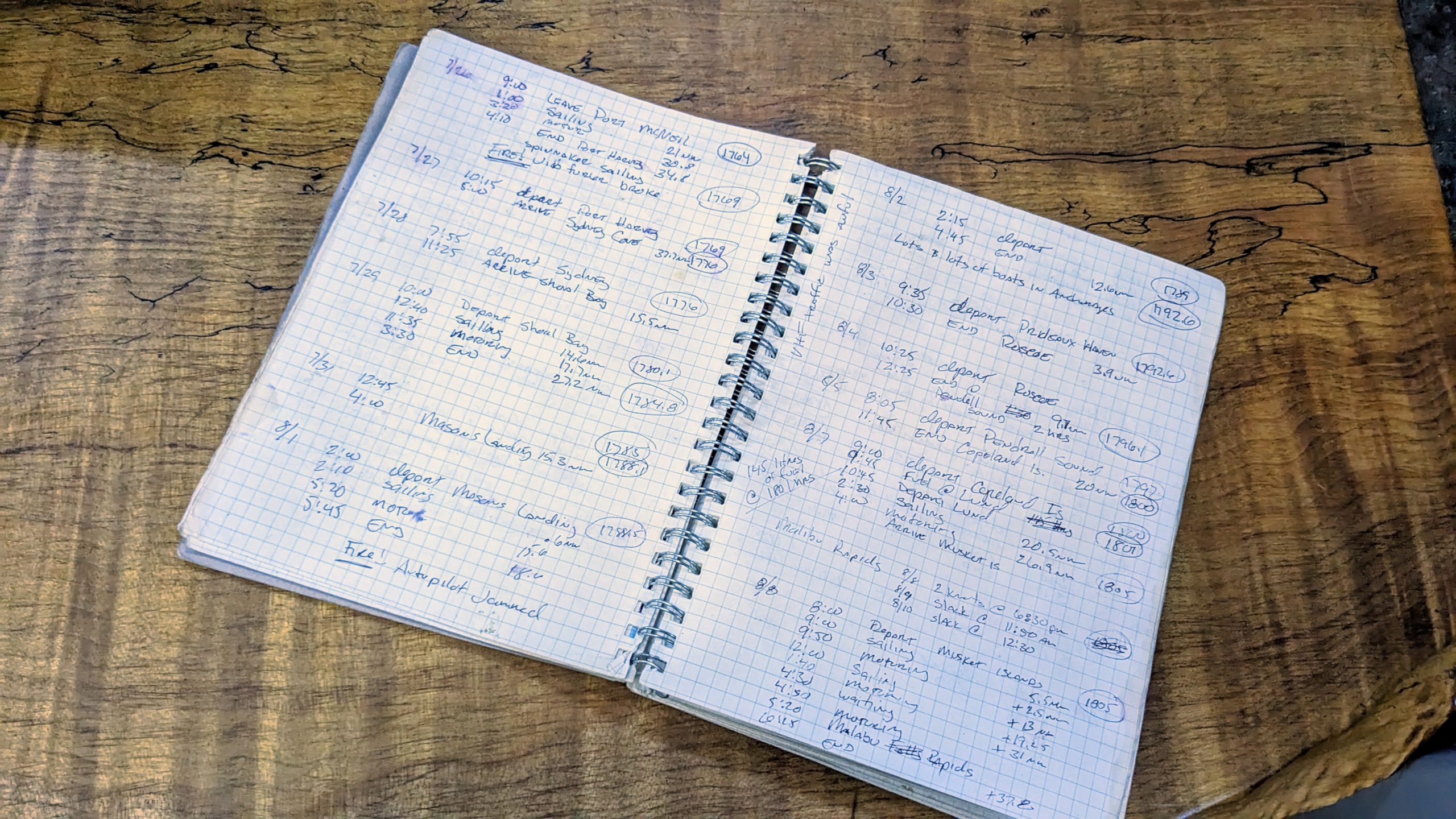 On Dec 31st I retired our old log book that kept track of all our voyages through Alaska and down the west coast. Every voyage is generally documented with things like dates, time, miles motored vs sailed, engine hours, locations, to do lists, and tidal information. This data is then entered into an obese spreadsheet. Sprinkled through out the log are notes that we write to ourselves, some making more sense than others;
