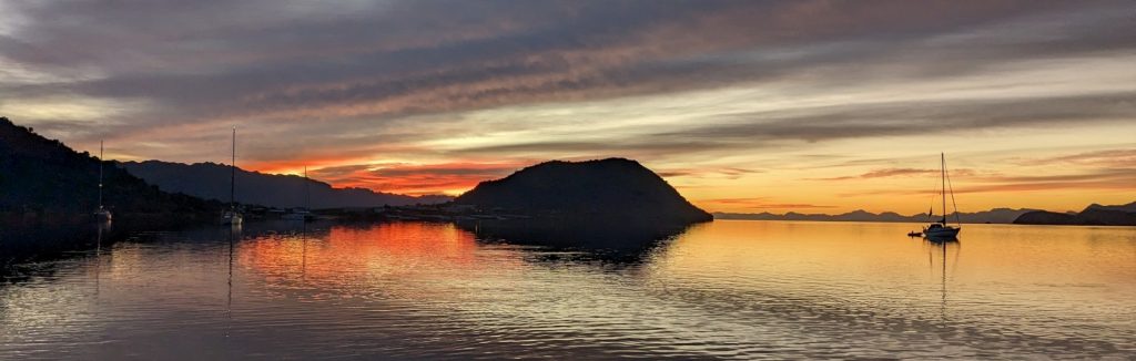 We left Santa Rosalia a few days after the new years, to continue our southern momentum. We chose a nice weather window to make the 30 mile sail further down the Baja coastline. Actually, we chose this day as the next week afterwards was forecast to blow from the north. With wind on our back side, we sailed for more than four and a half of the six hour voyage, with nothing of note really happening. It was good to sail. It was even better to sail in calm seas – for a change – and the comfort that comes with it.