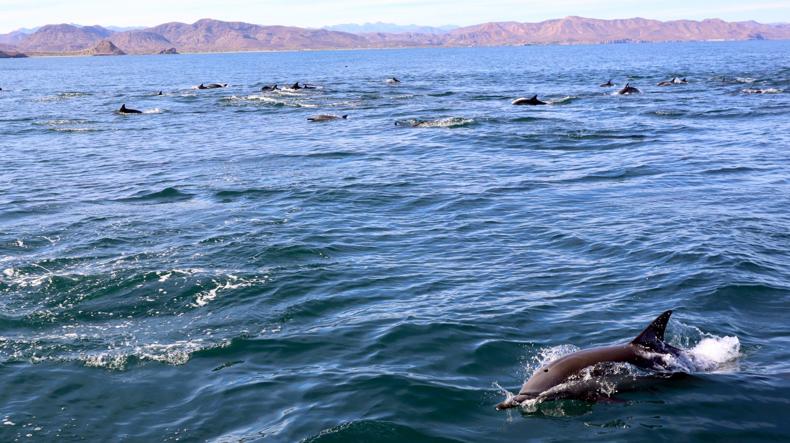 The next day, after six of them in total, we pulled up our own anchor and motored the 20 miles into the Bay of Conception, choosing to motor as our battery bank was heavily depleted. Mid way through our short hop we were welcomed by a good sized pod of local dolphins who played with Meriwether for only a few minutes before growing bored and diverting course back to their daily migration to who knows.