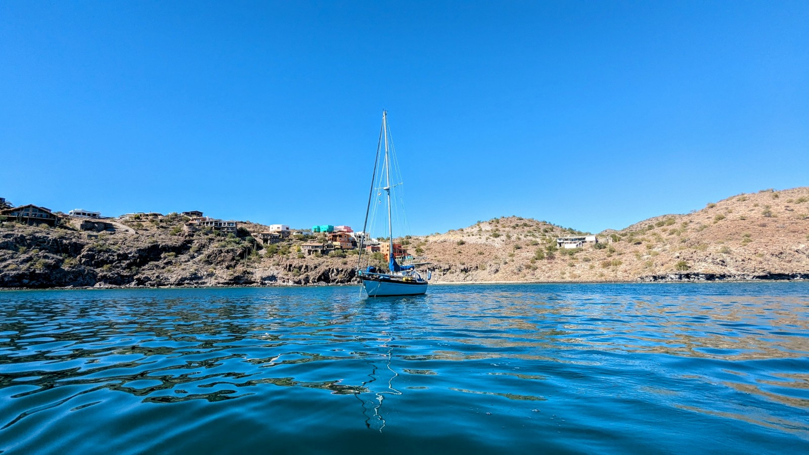 The man and I set off together to get out to his boat before it floated further away. It takes a bit of time in our small dinghy to travel a half mile, so he and I talked as best we could with a cavernous language barrier. I eventually learned that his boat was working fine but he couldn’t get back to it, he lived in Mulege, and has two kids, one of which was named Daniel – the boat shared the name. This was all good because the closer we got to his boat the less confident I felt about possibly towing it in. It appears that he was the one pulled away from his boat by the current as he was diving for fish. He had made it to shore, barefoot walked to near us, and swam out to us looking for a ride. Once back onboard, he was able to raise his anchors, start the motor, and probably took the rest of the day off. Rescue a fisherman badge unlocked!