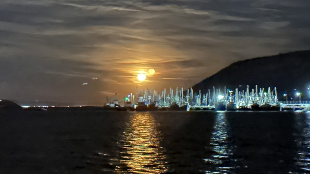 We would spend the next 5 days in a secluded and well protected anchorage not too far from what appeared to be the main fishing boat marina. The only bad part of this time was a high pitched squealing sound that seemed to be pointed directly at us from shore. Any time spent up in the cockpit was spent with a dog-whistle in our ears.