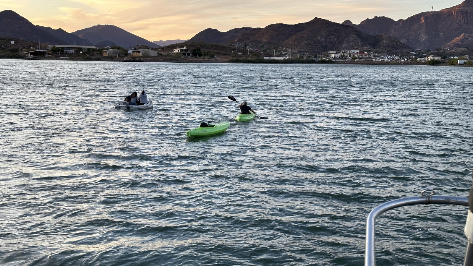 Said wind prompted a rescue of sorts, with the two women not feeling comfortable sharing the small kayak together in the choppier waters. Easy fix; we dropped our dinghy so I could get them back home with Ramon towed the 2nd kayak behind him in the first.