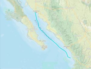 We had set out from Guaymas on a Monday, just as the late morning’s wind began to fill in. Within a half hour we had the sails up and were headed South down the Sea of Cortez. Kerri and I take turns “on watch”, usually in 4-hour segments. We stopped being strict about it long ago. There is nothing more wasteful then to go “off watch” only to lay there wide awake, so we just stay on until we get tired and then call the other person up, who stays on until tired, and repeat. For the most part we aim for four hours, but we often do five or six hour watches, allowing the other person to get more sleep, which in turn gets you more sleep as they are more rested. This is what we did for the 490+ mile, 99.5 hour voyage. Just on watch, and sleep, not much more. We would make sure to spend time with each other for breakfast and dinner of each day, but for the most part we were always alone.