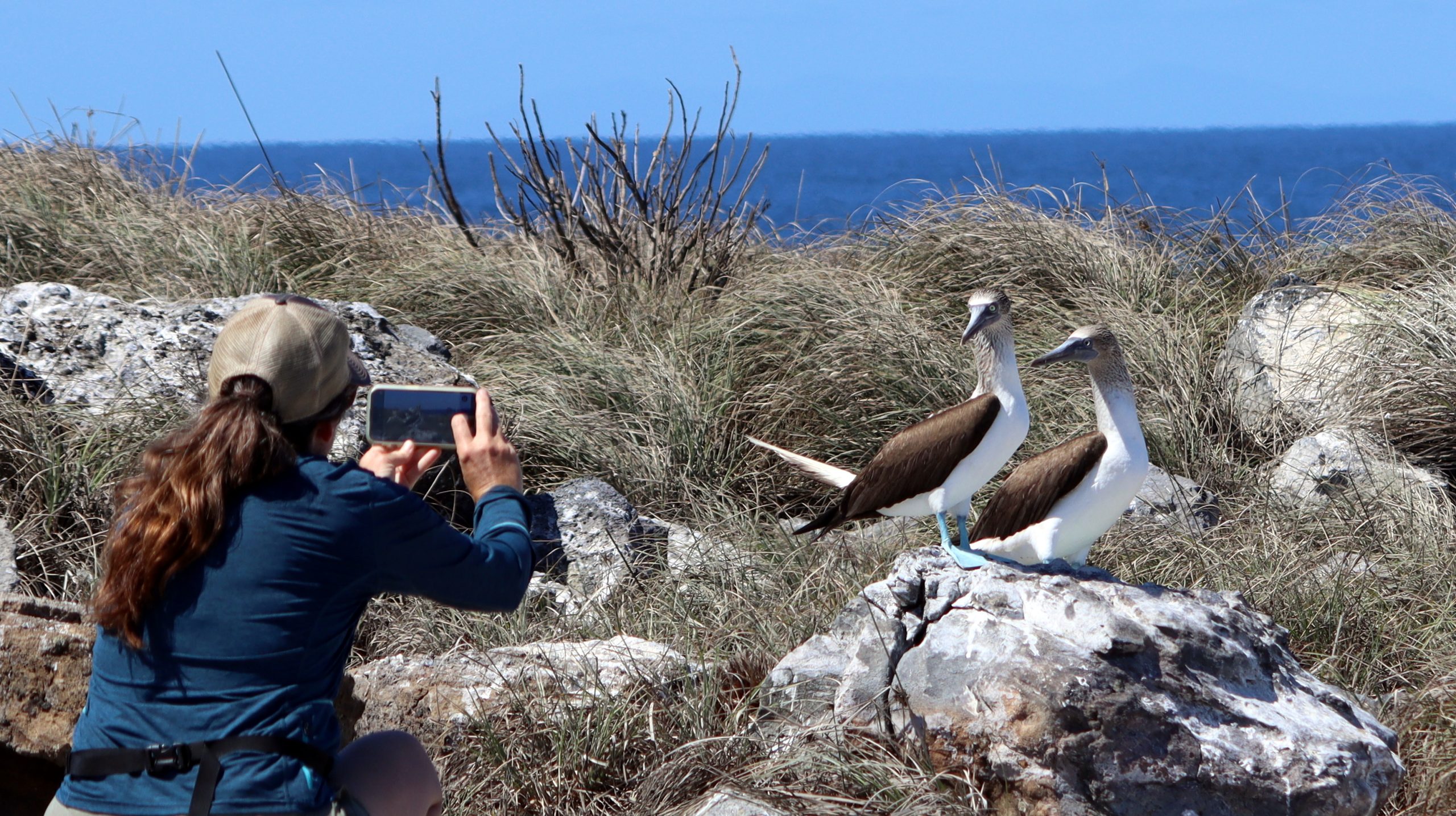 The stories were true. The nesting birds couldn’t have cared we were there with the vast majority not caring any more than glancing our direction as we strolled past with cameras flickering away. We ended up walking the full trail system, which took us to the northern most point of the island, then to the eastern most before heading back to the south anchorage where Meriwether awaited our return. We took hundreds of photographs of the Magnificent Frigate Birds and the Blue Footed Boobies that were nesting on the island, as well as a few iguana.