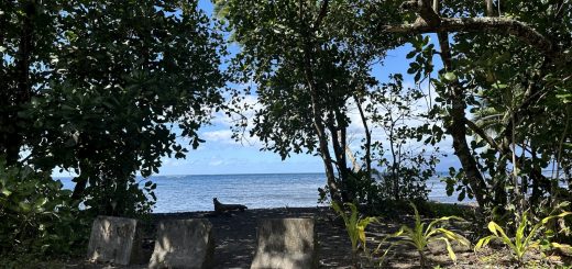 It was time for us to raise anchor to leave the Bay of Virgins and it’s 100 foot depths. This we have done before, and I intended to use the same plan as those other times; run the line through a block attached at the mast, and back up to the other side of the windlass that can haul in rope (and not chain). This, in the past, has allowed us to bring in the 100 feet of rope that gets progressively heavier as more and more if the chain is pulled towards the surface. 100 feet of 3/8 inch chain weighs in at just under 200 pounds, so it is not something that can be done by hand. All this went enough until the chain was just about to come over the bow roller, at which time the snatch-block I was using broke causing the 200 pounds of chain to pull the rope back into the ocean until it tangled with the samson-post where it tied itself into a knot.