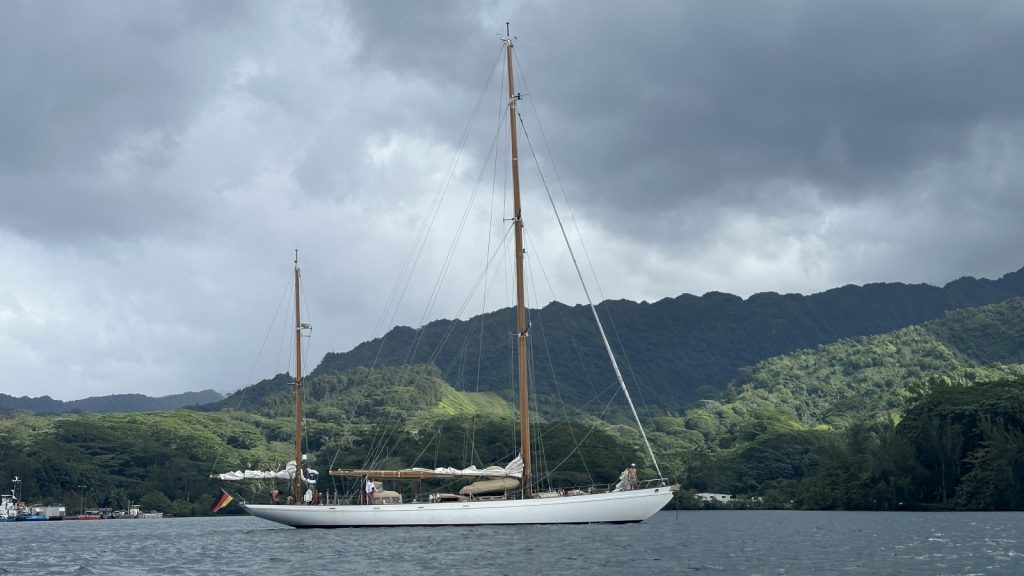 For the next 300+ nautical miles we sailed WSW towards the largest island we would encounter in French Polynesia – Tahiti. It would take us a total of 76 hours at sea to get there, and we happily sailed the majority of the distance, only restarting the Perkins in the final day as the wind died off. On that same day we got a fly-over my a military plane, who then contacted us on the radio to ensure we knew – we had not – of the restrictions near the Olympic Village at the south end of Tahiti. As luck would have it, we were arriving in the early hours, just one day before the Olympic surfing competition began.