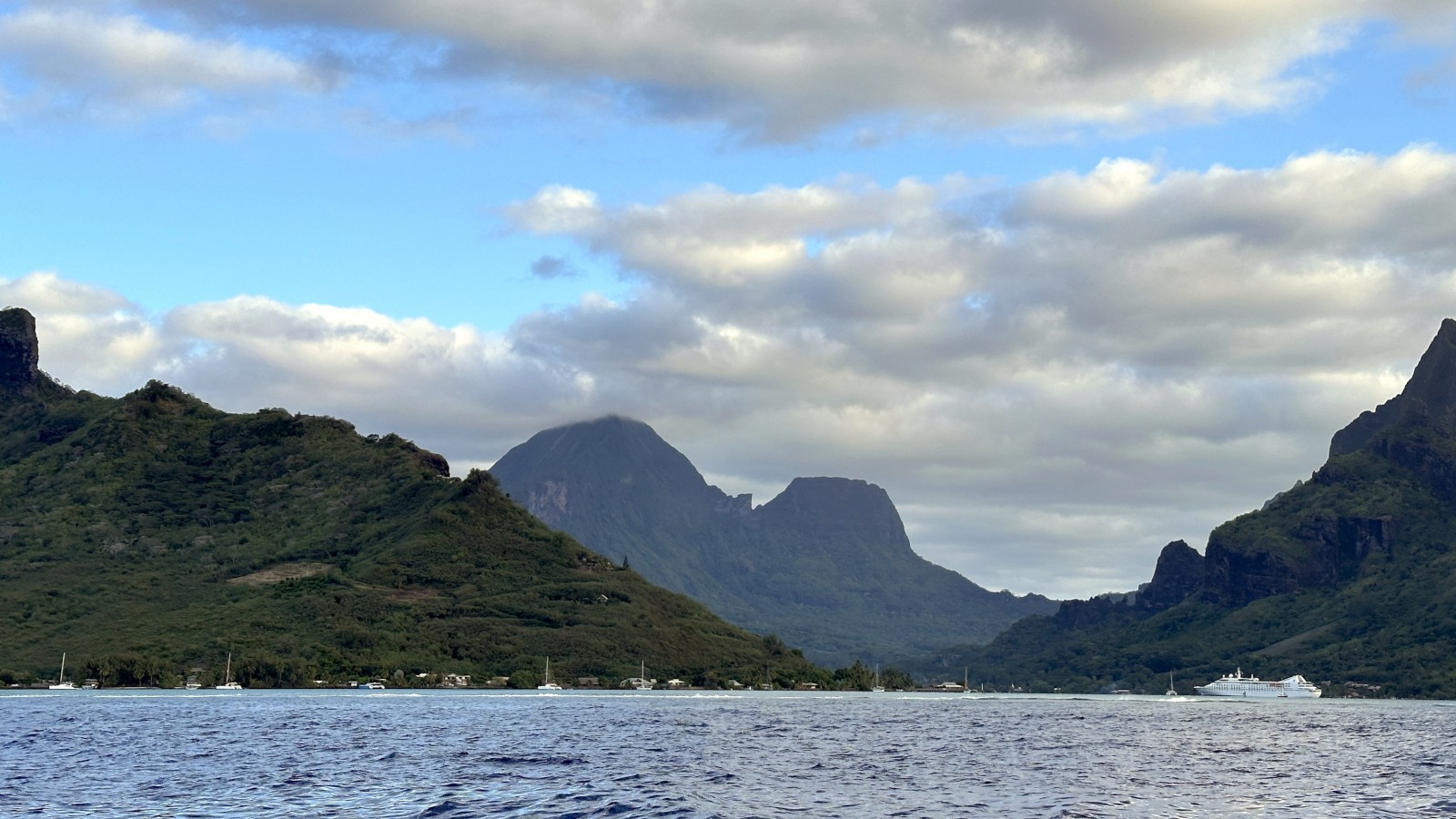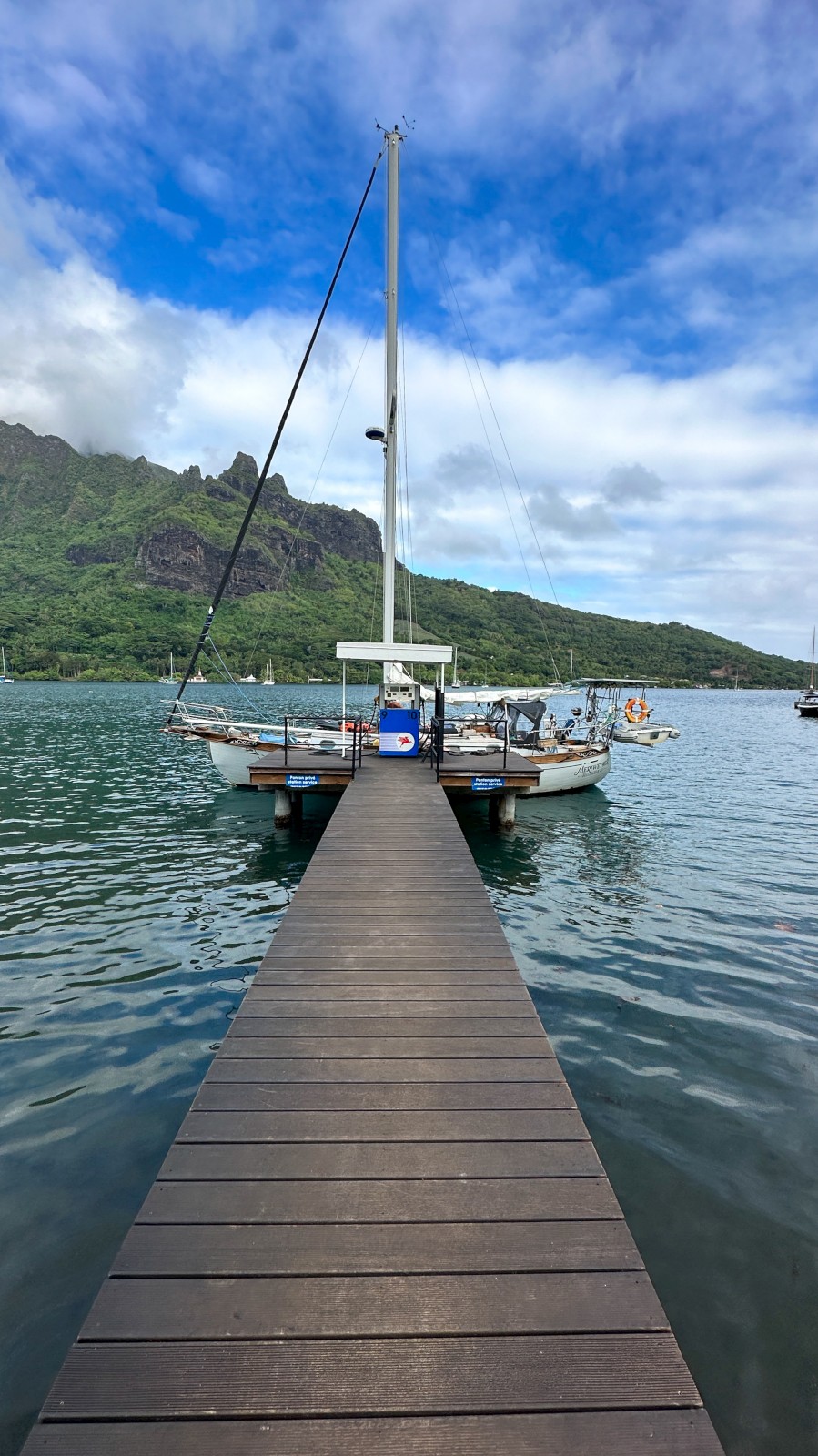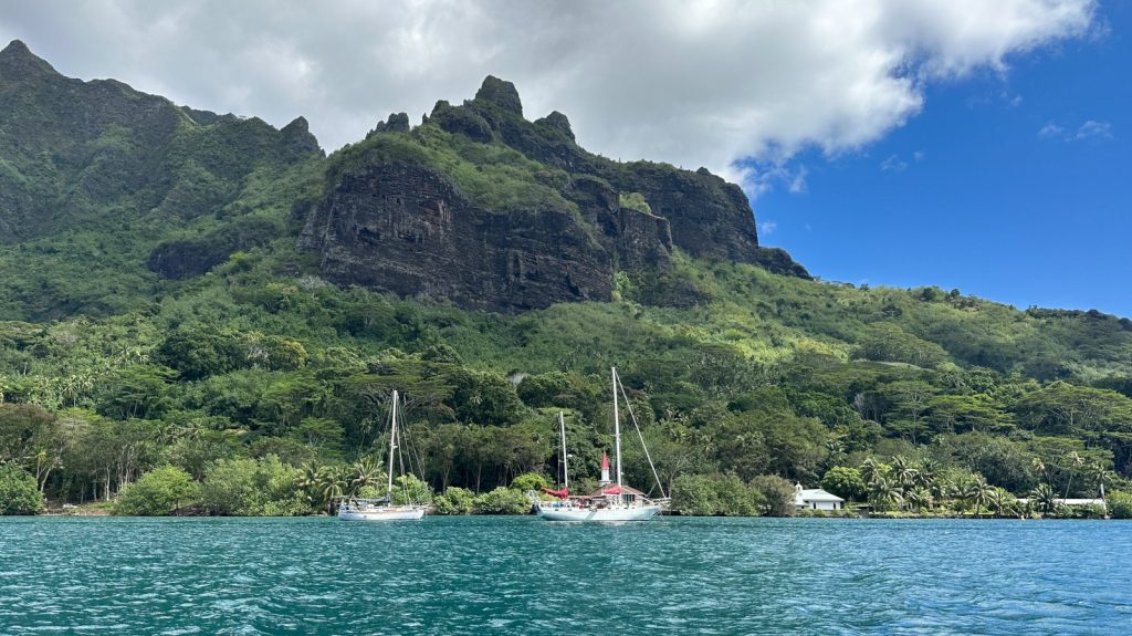 We moved from the island of Tahiti to the next island to the West – Mo’orea. Cook’s Bay, on the northern side of the landmass to be specific. It was a simple 45 mile, 9 hour, passage. All of which we motored as Tahiti itself gives a large wind-shadow to the prevailing westerly winds.