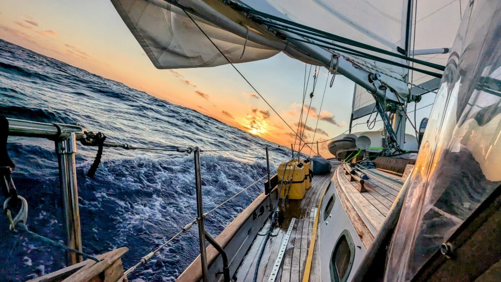More days of great sailing ensued with nothingof note really happening but for one instance of two boats trying to occupy the same 30 feet of water in the thousands of miles of open ocean in the middle of the night. Even though we were the stand-on vessel (should not alter course, they should), and we made radio contact with them 15 minutes prior, Kerri had to panic-avoid a fellow cruising boat in the final moments before impact. This was the only boat we would be within canon range of for the full 9 day sail and somehow we would nearly collide! 48 hours later Meriwether and this boat would cross paths within spitting distance of each other again. However, this time we would be the give-way boat, so we did just that with miles and miles to spare, ensuring we didn’t even get within visual range (about 5 miles) of the other cruisers. Five miles is an acceptable distance to pass another boat in the middle of an ocean. Kerri is still traumatized.