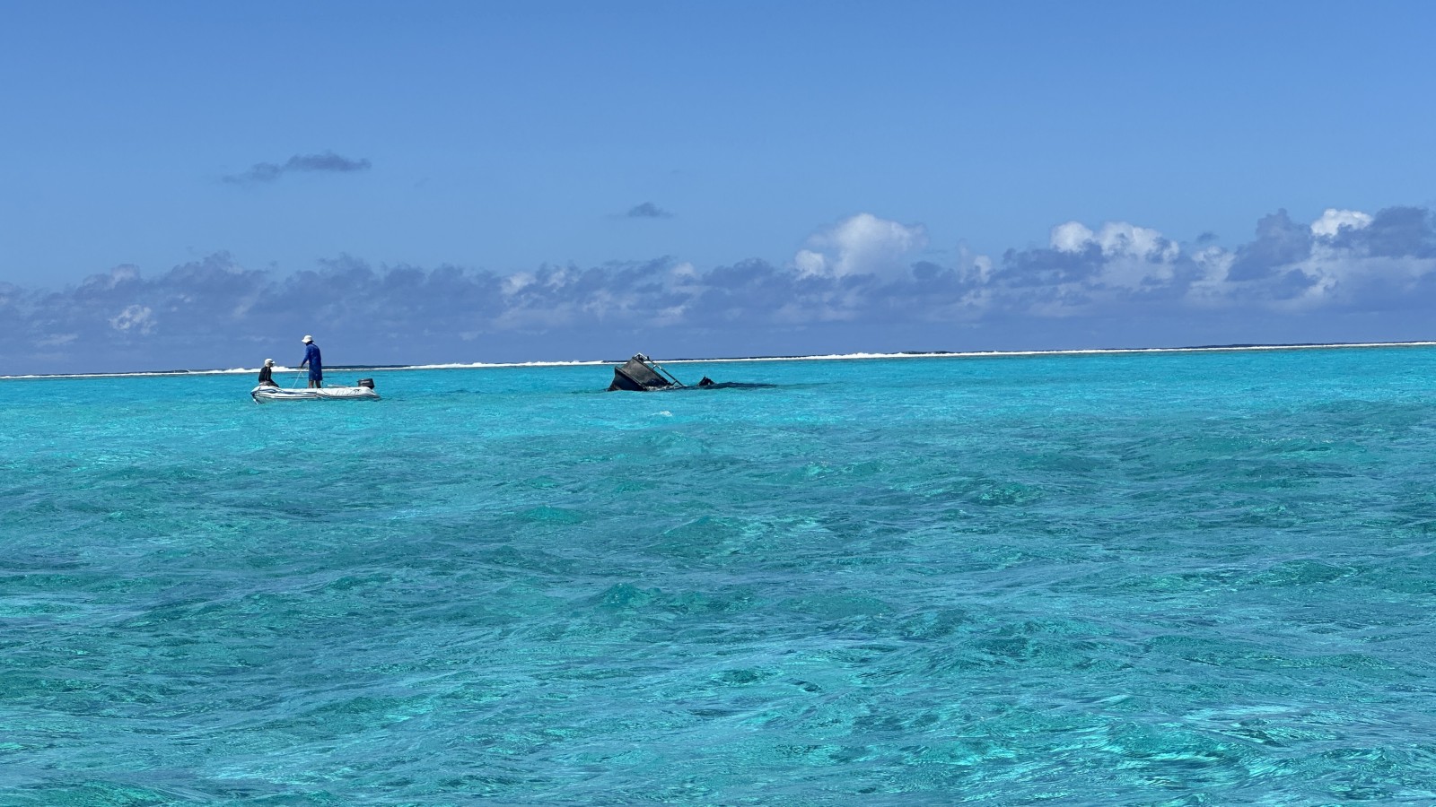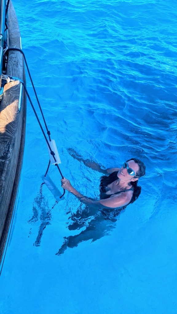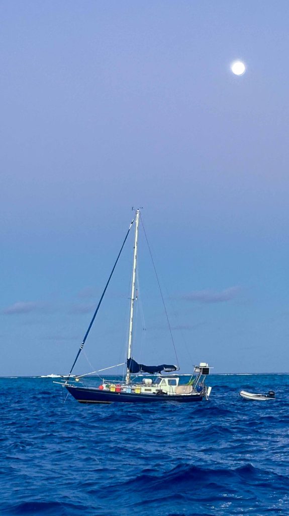 Seems like you’ve gotten used to the South Pacific anchorages. I can practically see the bottom paint on that blue boat at anchor in the atoll. 🙂