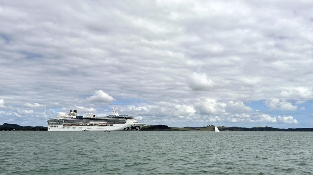 Eventually Meriwether’s bottom was clean enough to move on to more exotic locations. It was a beautiful day to sail, so we hauled out the sails and got straight to it, gently working our way up into the islands of the Bay of Islands. Along the way we navigated past two cruise ships, hundreds of other personal water crafts, and even a paraglider. This place was seriously hopping, and I was quite enjoying the more complex sailing through traffic. Kerri, not so much. At least we did not have an ocean swell, and that was all that mattered to me. Calm waters, sunlight, and a good breeze made for a nice two and a half hour sail to Paradise Cove (2) on Urupukapuka Island.