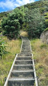 Once atop the hill, the trail leveled out before dropping back down where another set of stairs offered a straight up climb again. This would repeat a few times but eventually we were able to hike out to the end of the trail. Here, a viewpoint of the waters we just sailed was our ultimate reward before turning around and repeating all those stairs in reverse, which is so much worse. Even Kerri felt it afterwards. More than me for a change. Kerri is just passing the age in which we both met, and slowly but surely she is coming to recognize how a body sneaks up and slights you one day without warning. The slighting will only get worse from here I keep telling her.