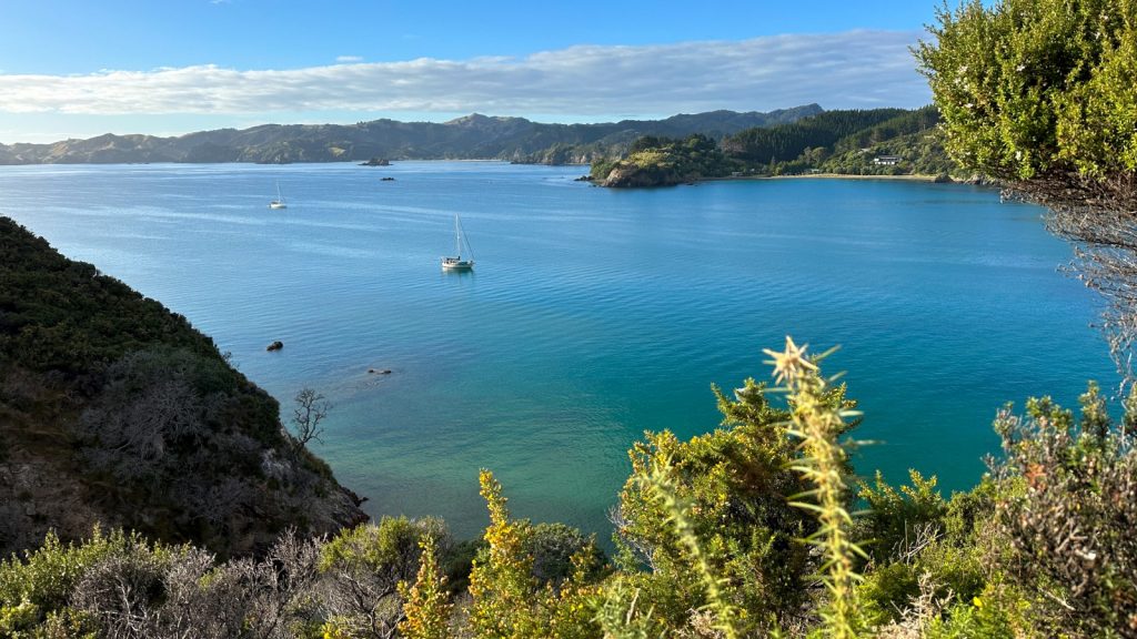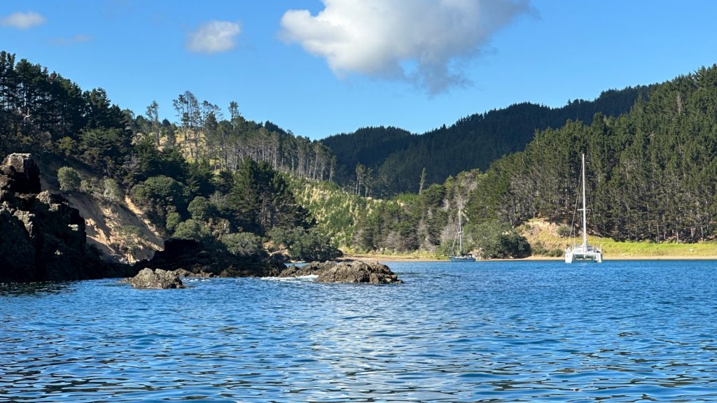 After a day of recouping, we pulled up anchor and moved a short hop around the point and to the next bay; Whangaihe Bay. It is a small anchorage with great protection from all but a single direction that would be inconsequential. We were hoping to have the place to ourselves for a couple days but as we rounded the corner to start our entry into the bay a catamaran appeared already anchored. Well, okay then. No parties into the late night hours for us. (I’m trying to remember the last time we even stayed up past 9pm)