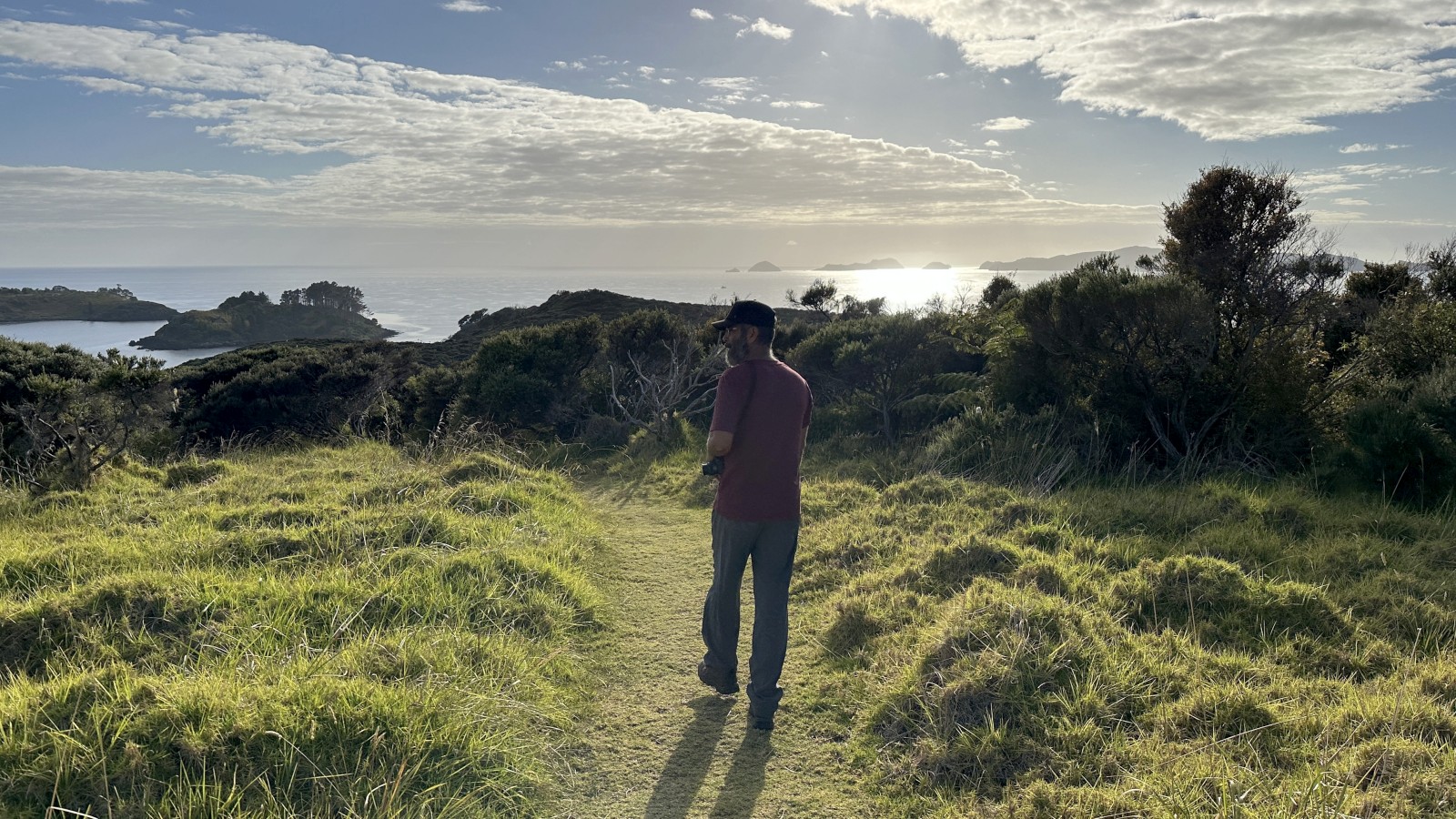 Once atop the hill, the trail leveled out before dropping back down where another set of stairs offered a straight up climb again. This would repeat a few times but eventually we were able to hike out to the end of the trail. Here, a viewpoint of the waters we just sailed was our ultimate reward before turning around and repeating all those stairs in reverse, which is so much worse. Even Kerri felt it afterwards. More than me for a change. Kerri is just passing the age in which we both met, and slowly but surely she is coming to recognize how a body sneaks up and slights you one day without warning. The slighting will only get worse from here I keep telling her.