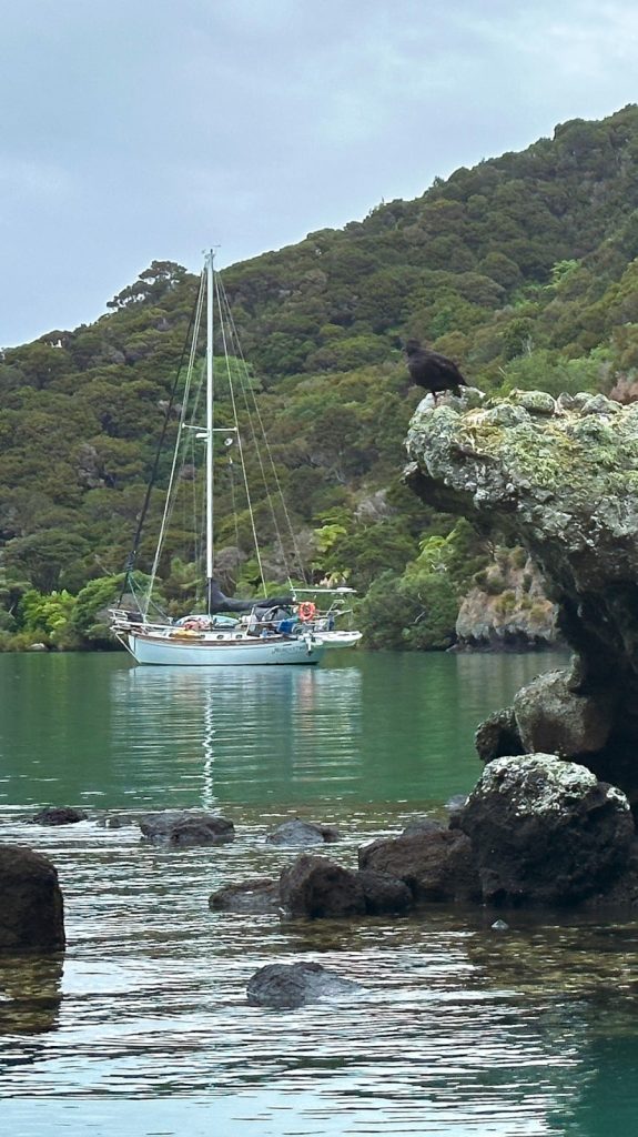 With the possibility of grocery shopping shelved for another time, I had only one big chore to accomplish in this region; a bit of bottom cleaning on Meriwether, who has ramped up the collection of hitch-hiking barnacles since we arrived in New Zealand. It seems that our bottom paint applied in Mexico just before our Pacific crossing offered little to no protection to these particular barnacles here in New Zealand. Because of this, I knew I would be diving on Meriwether every week or two. Considering the mild water temperatures, I could do this daily if it were not for a regulation stating that bottom cleaning may only be done in specific anchorages along the coast. Just outside the Whangaroa marina is one of these locations and the only one we have come across since leaving the Bay of Islands where I last cleaned Meriwether’s bottom side.
