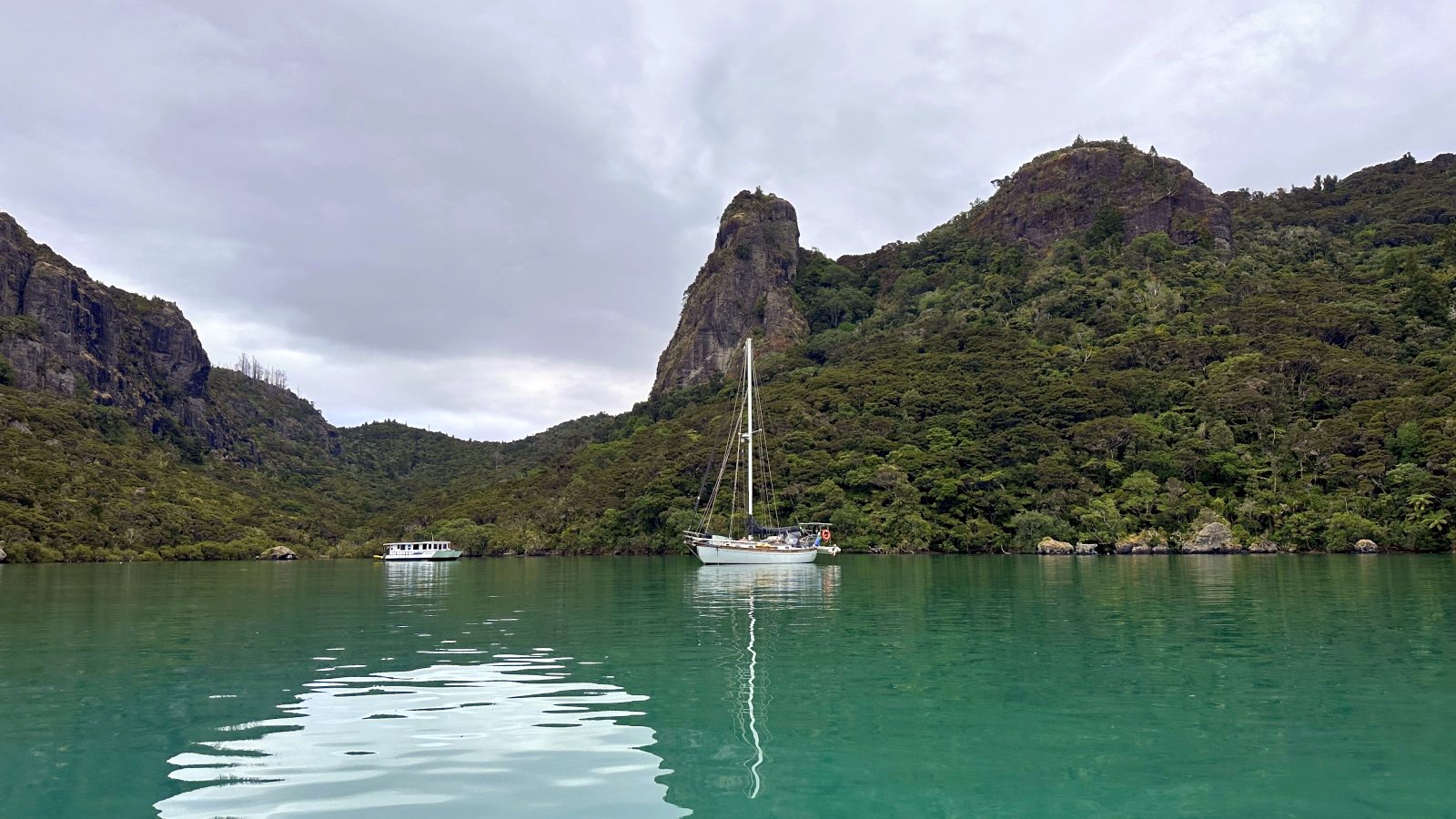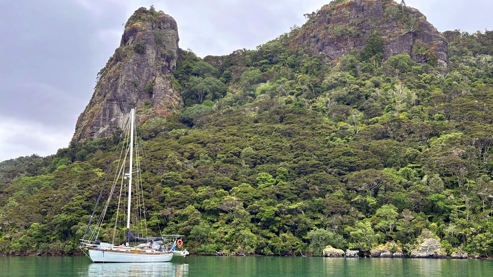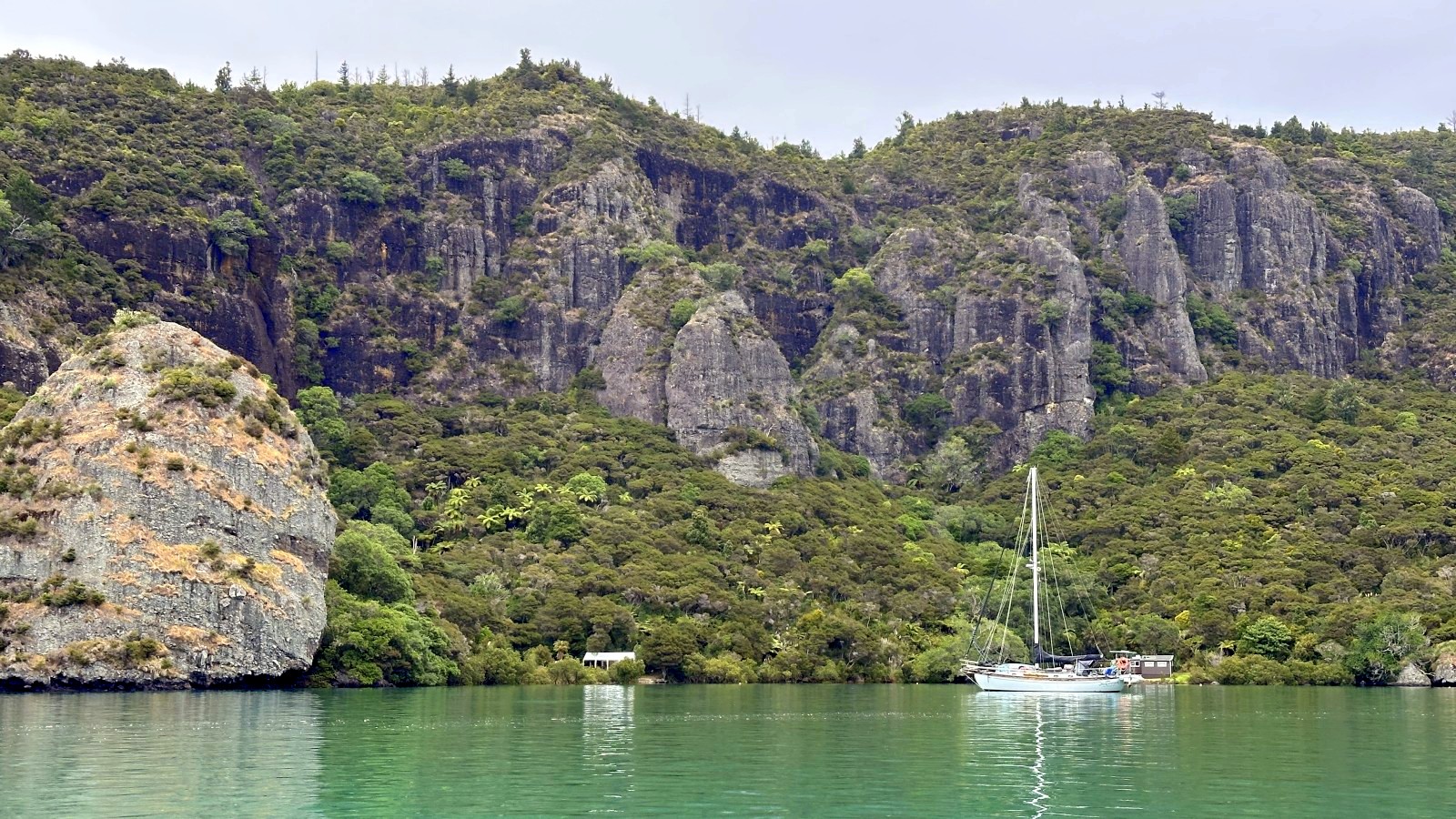 Upon arrival we chose to drop anchor, beside a small houseboat, in the picturesque Wahai Bay (2) with its towering rock formations offering memories of Alaska, just to tease memory of Alaska somewhat. Kerri set out on a solo paddle on a SUP board, while I hung back on Meriwether while the owner of the houseboat dropped in for a meet and greet. The uber-calm waters of being anchored NOT in the ocean swell was fully welcomed by us both, with good sleep a result of the still nights.