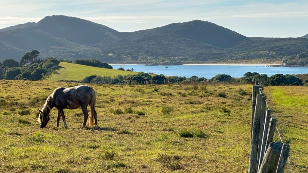 Our new neighbor was one of the same couples we were anchored with back on Motukawanui Island and we got to know them a bit more during this stay. They had introduced us to a hike out to a viewpoint of the other side of the Point, overlooking a span of waters 30 miles or more that would bring us to North Cape; the north-eastern tip of New Zealand. The hike itself took us along the beach to a campground where we caught a paved road through pristine farmland straight out of a book. The final quarter mile or so brought us down a dirt road to the viewpoint. We didn’t know it at the time, but this would be as far North as we would go.