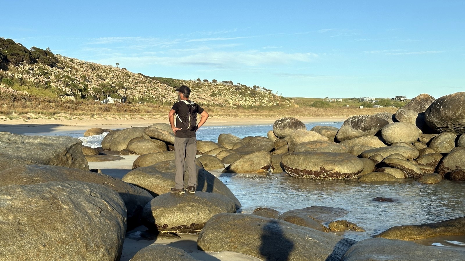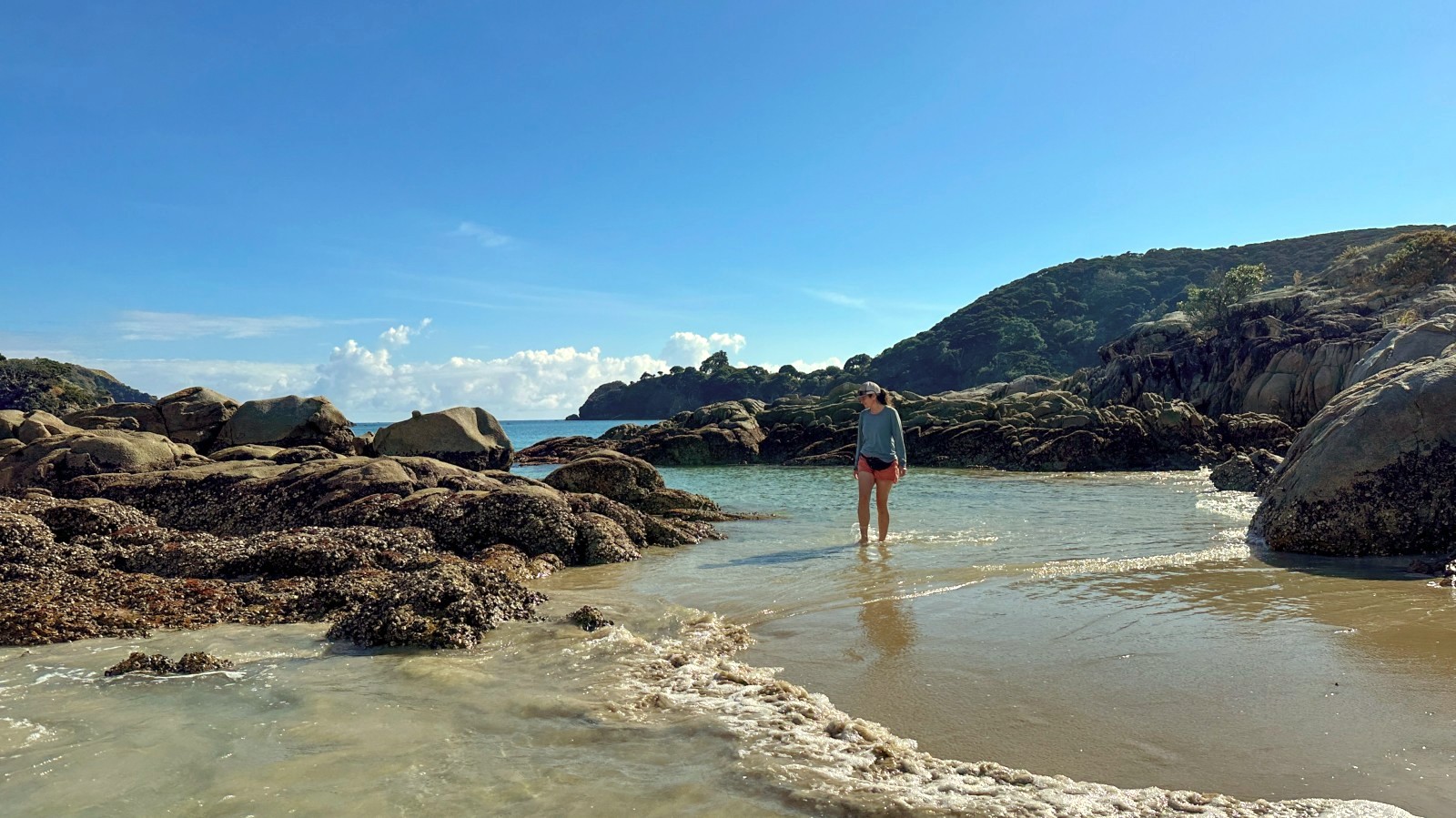A quick revisit to the grocery in the morning filled our stores once again and with little else to do in town, we picked up anchor and set out further North. The wind had reversed overnight, but we would still be able to sail the majority of the distance – 17 miles in total – close-hauled in calm waters until we rounded Otamatiti Point where Waikato Bay beckoned us in for a stay. Hiding behind a small island from the ocean swell was the only other boat we have seen this far North. Beautiful sandy beaches surrounded us which we got out to enjoy right away.