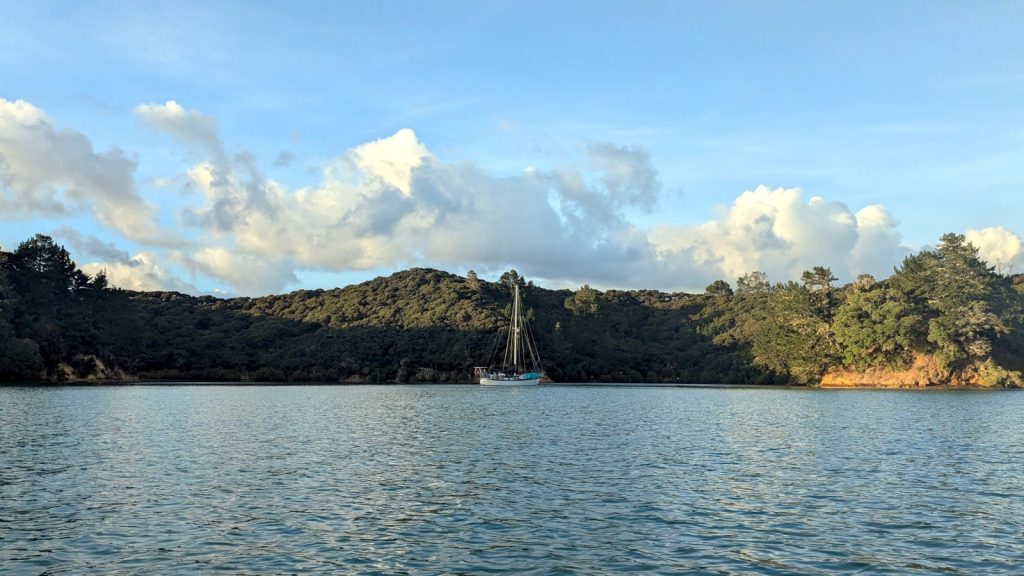A day-sail returned us to Mangonui for a single overnight stay, and another quick visit to the grocery store. We left as soon as possible. While Mangonui is a cool place, we have already been here. Just 4 miles away was an anchorage out in nature, and we always prefer a backyard of nature over restaurants and boat traffic.