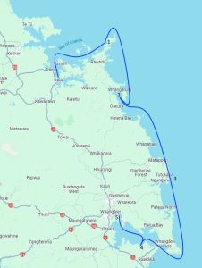 First task was to travel the 80-ish miles along the New Zealand coast line, which lacked a whole lot of safe anchorages along the way. Surely, we could have done it as one long sail – taking about 14 hours total – but we chose to break it up into a few more manageable chunks. Step 1 was just to get back out to Deepwater Cove (1) to stage ourselves for the following day’s milder sea state to venture out into the ocean itself. After a good night of rest, we set off – escorted by dolphins – and rounded Cape Bret and the famous “hole in the rock”. A fair wind carried south for six hours where we once again dropped anchor and overnighted at Whangaruru (2). Another day of good winds and ix hours of sailing brought us down to Tutukaka (3). Along the way we were among a few other boats making the same trek, either North or South. It was practically an Interstate Highway passing by so many other sailboats, but it did provide a little bit of excitement in an otherwise boring sail. With weather beginning to threaten another big blow by the afternoon of day four, we woke very early to knock out the last six hour sail to Marsdon Marina (4).