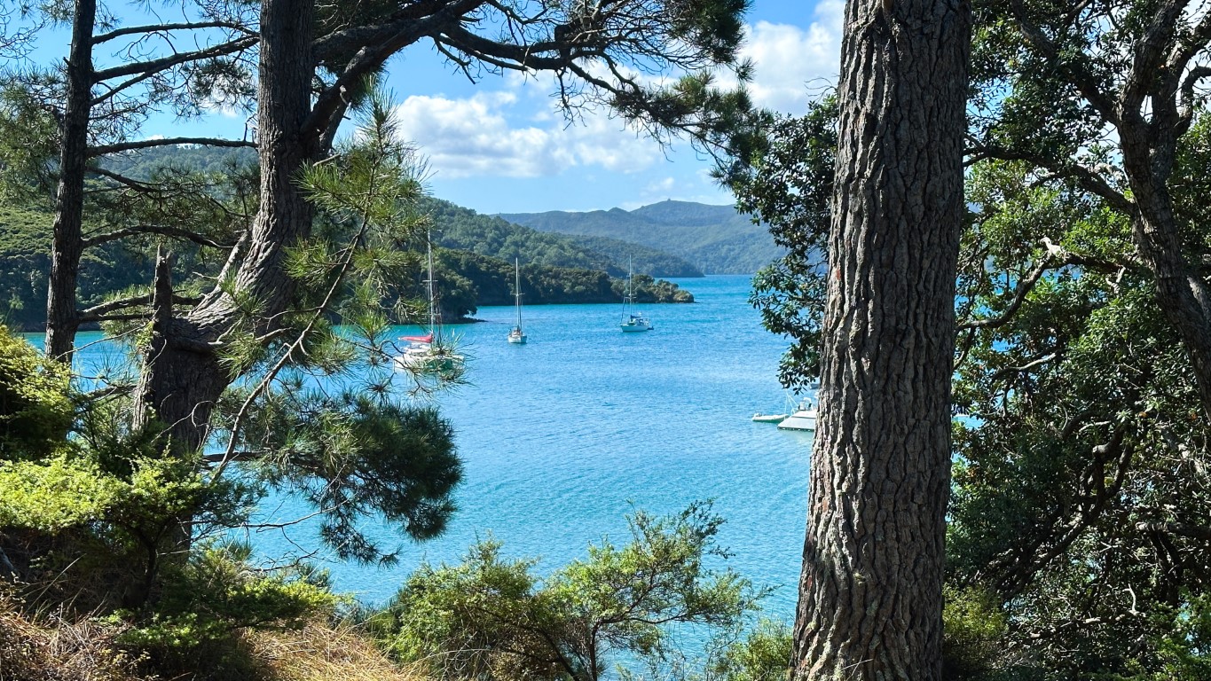 After a much-needed morning of sleep, we got straight back to it. We lifted anchor and motored Meriwether deeper into the protected waters of Great Barrier Island, where a network of anchorages offered plenty of options for both shelter and exploration. At that point, we weren’t chasing anything specific—we were just happy to be afloat again, protected, and slowly easing back into the rhythm of boat life.