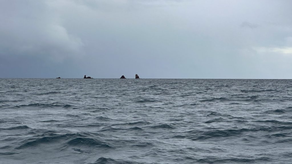 Ahead of us sat Hen Island, about four hours out, and it became our lifeline. It wasn’t large, but if we could tuck in behind it, we’d get a break from the seas before the final push into the harbor. So I aimed straight at it, adjusting just enough to slide into her lee at the last moment. That plan, simple as it was, became the central debate of the next four hours. Every so often, like clockwork, Kerri would remind me that I was steering directly at an island even though it was literally hours ahead. At first I figured confidence would settle it. It didn’t. Then I figured reassurance might help. It didn’t. Eventually, after enough repetition, even I started second-guessing the line. Hand steering in those conditions is already exhausting—physically and mentally—and adding doubt into the mix doesn’t make it easier. At some point, I had to shut it down and focus. There was no room left for debate. I was at the helm, I decide where we are going, full stop.