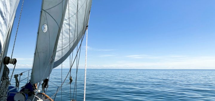 Day 5: 36 nautical miles. We weighed anchor at peaceful Tuna Point, with just this cabin with the tractor tire dock overlooking us. It seems unoccupied (by the living anyway), but I swear the door wasn’t cracked open when we pulled in the night before. We’ve been choosing anchorages by pure convenience—whatever’s a quick stop from our route, in and...